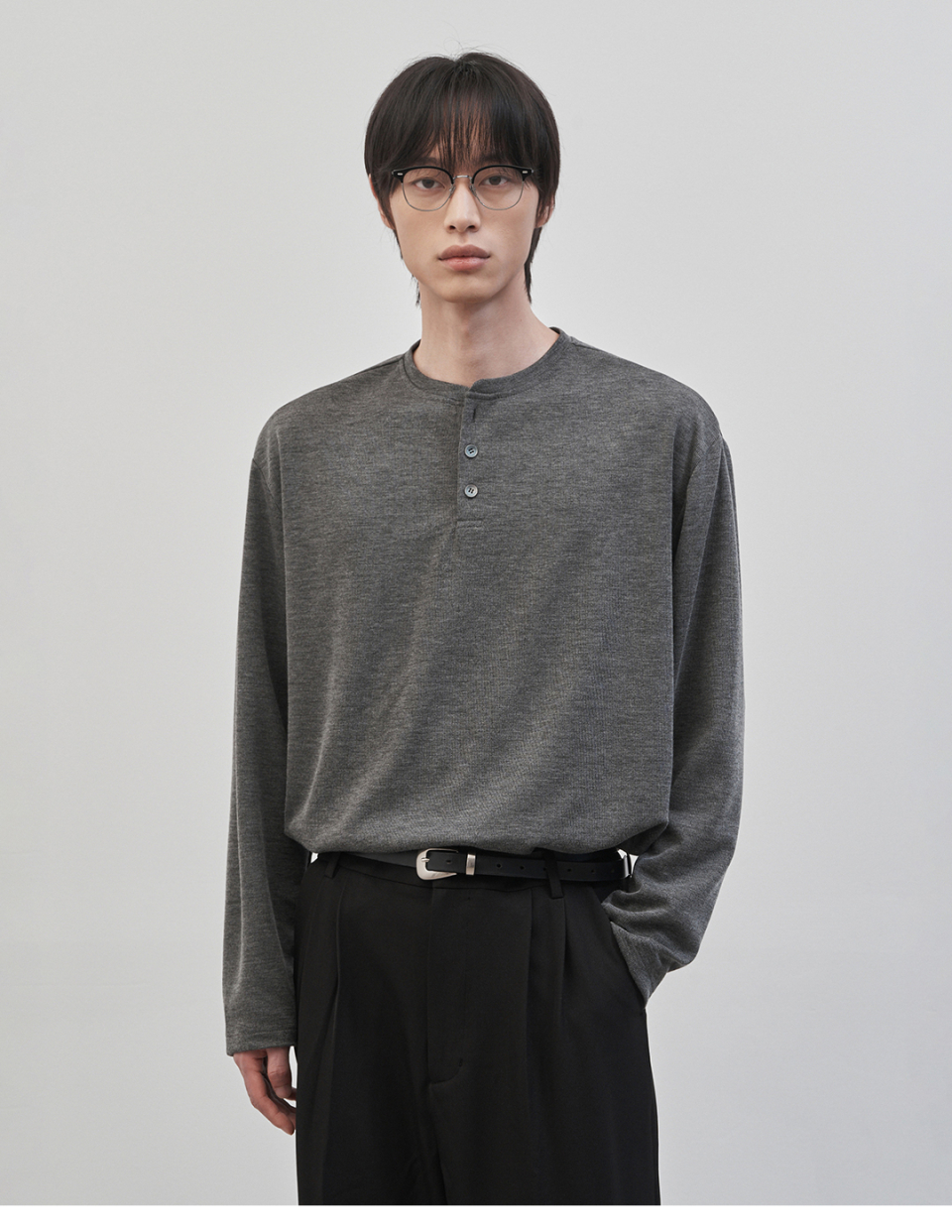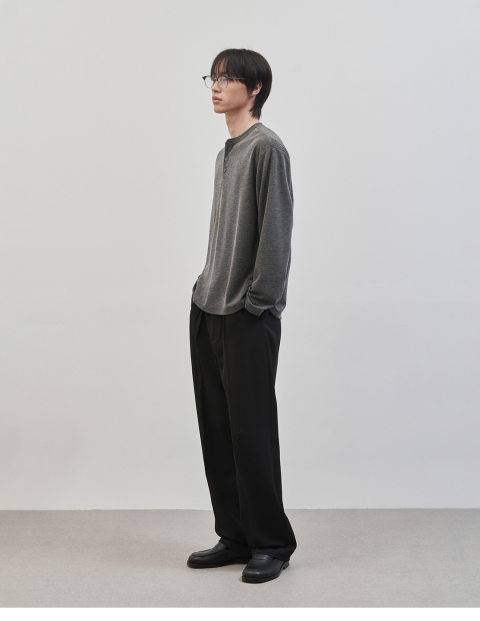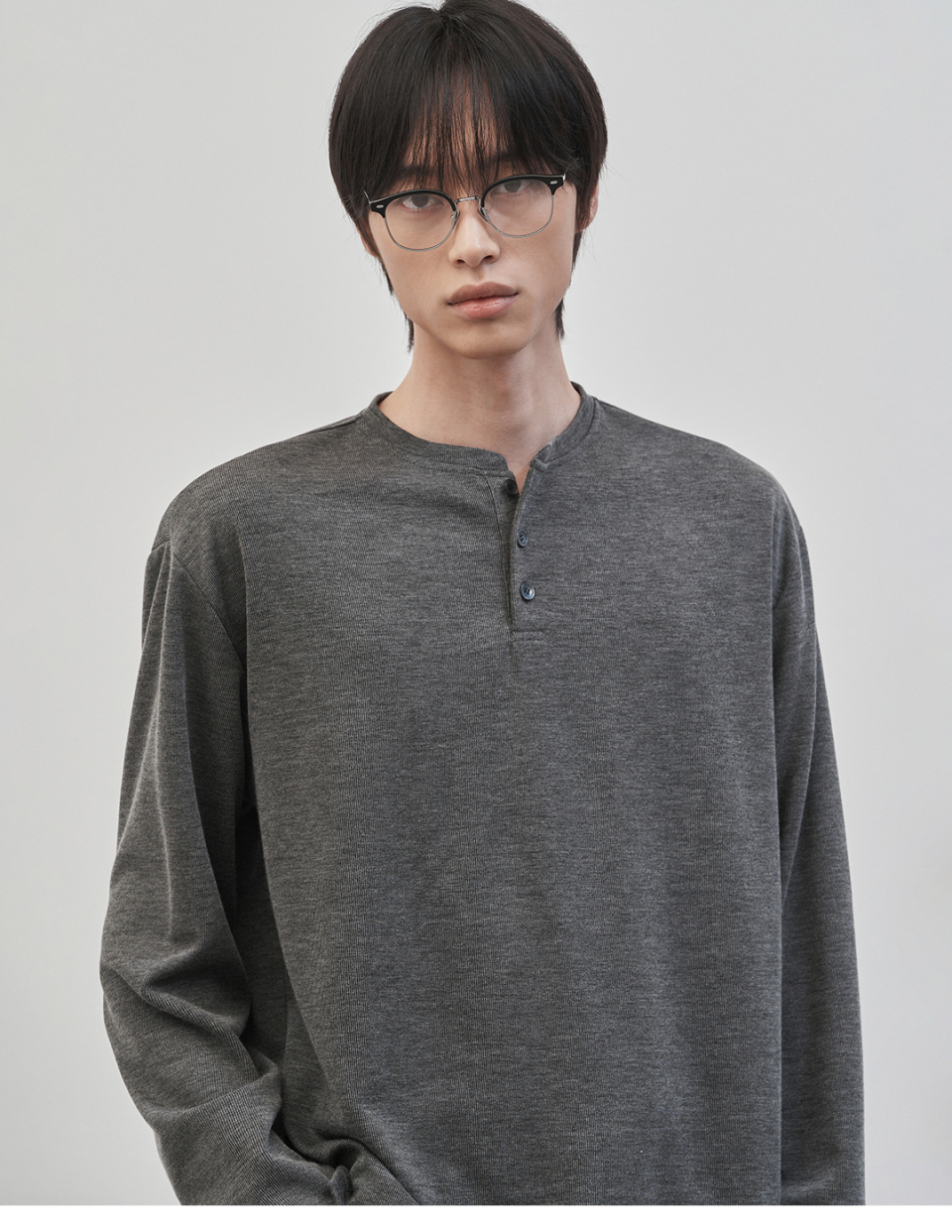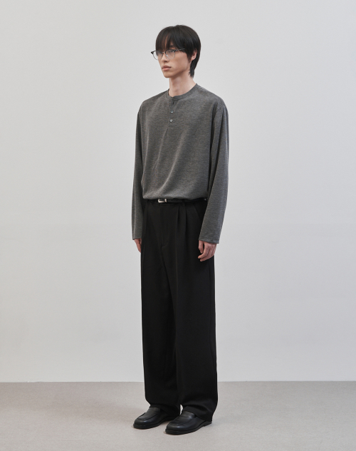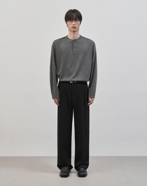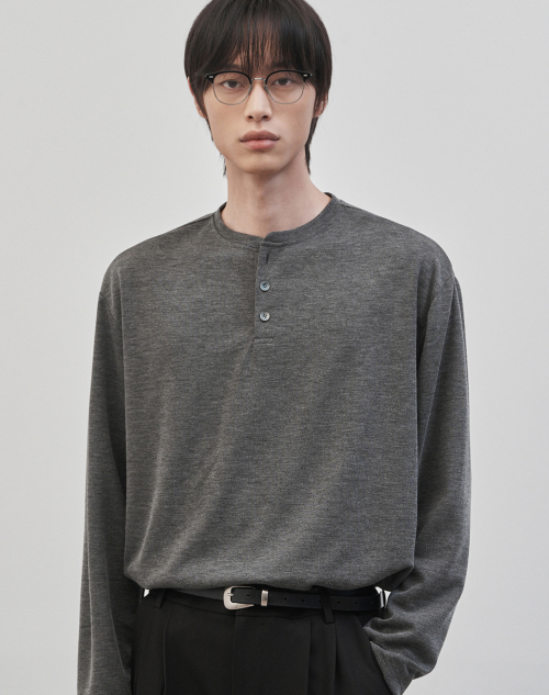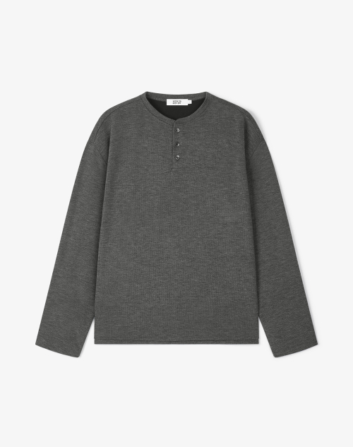 레스티드 세미 오버핏 헨리넥 니트 [차콜]