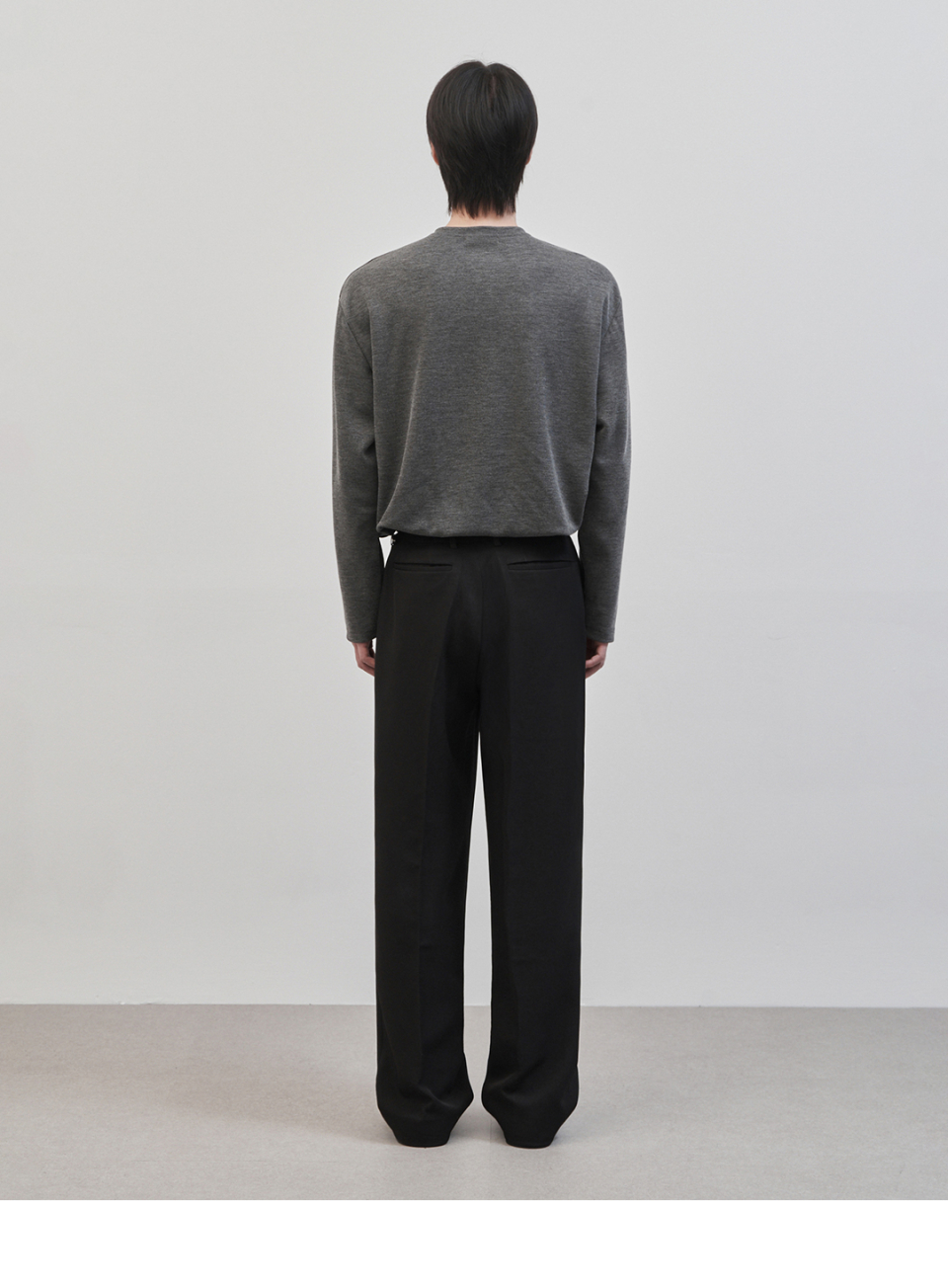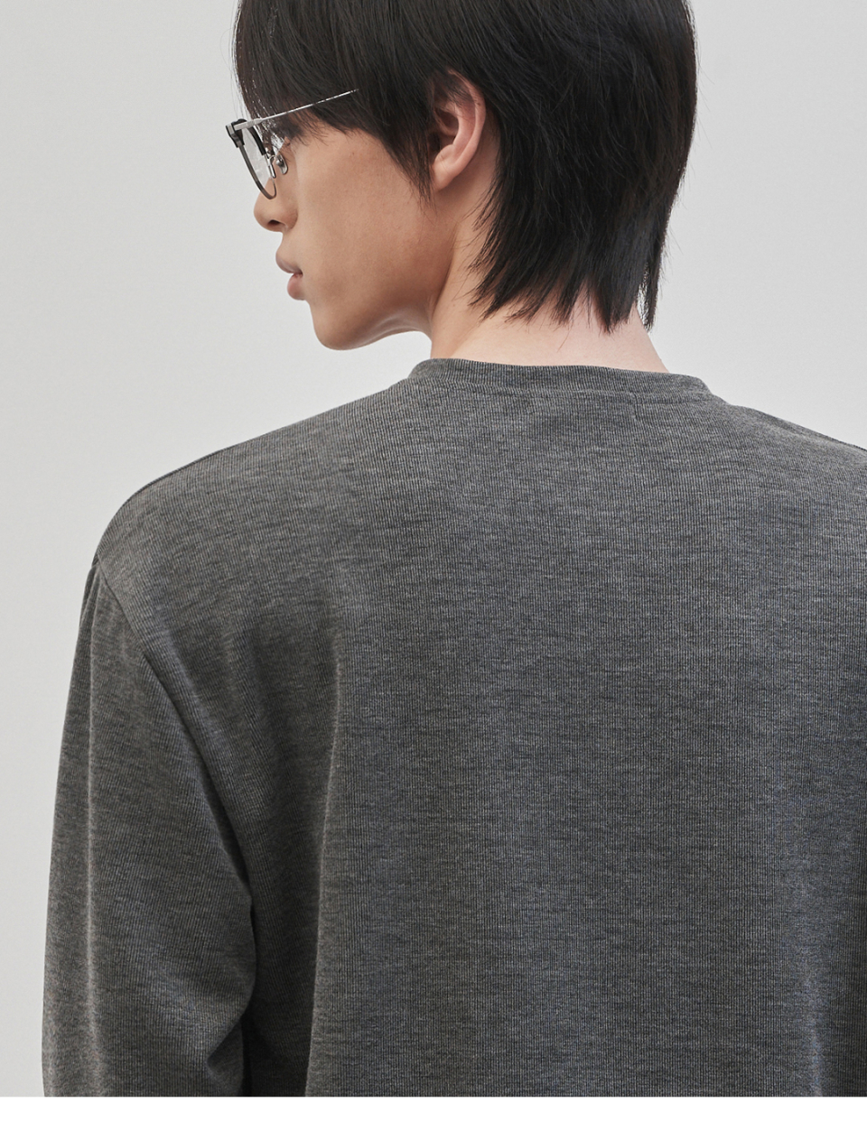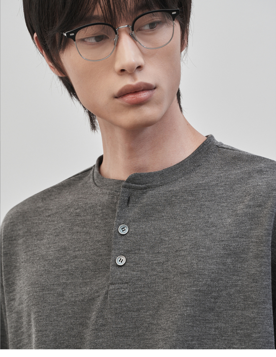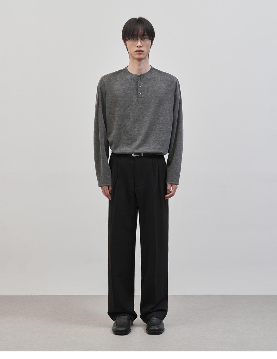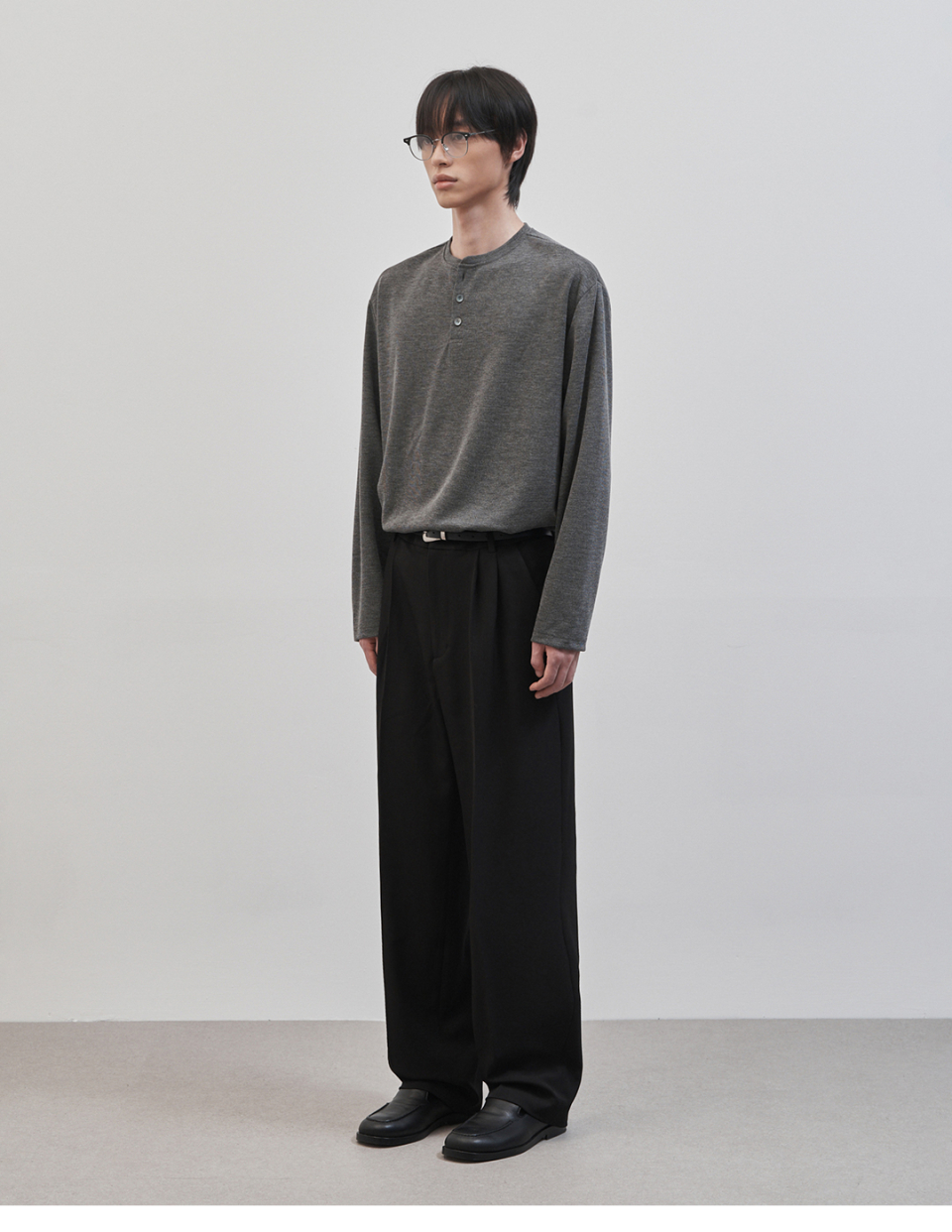레스티드 세미 오버핏 헨리넥 니트 [차콜]