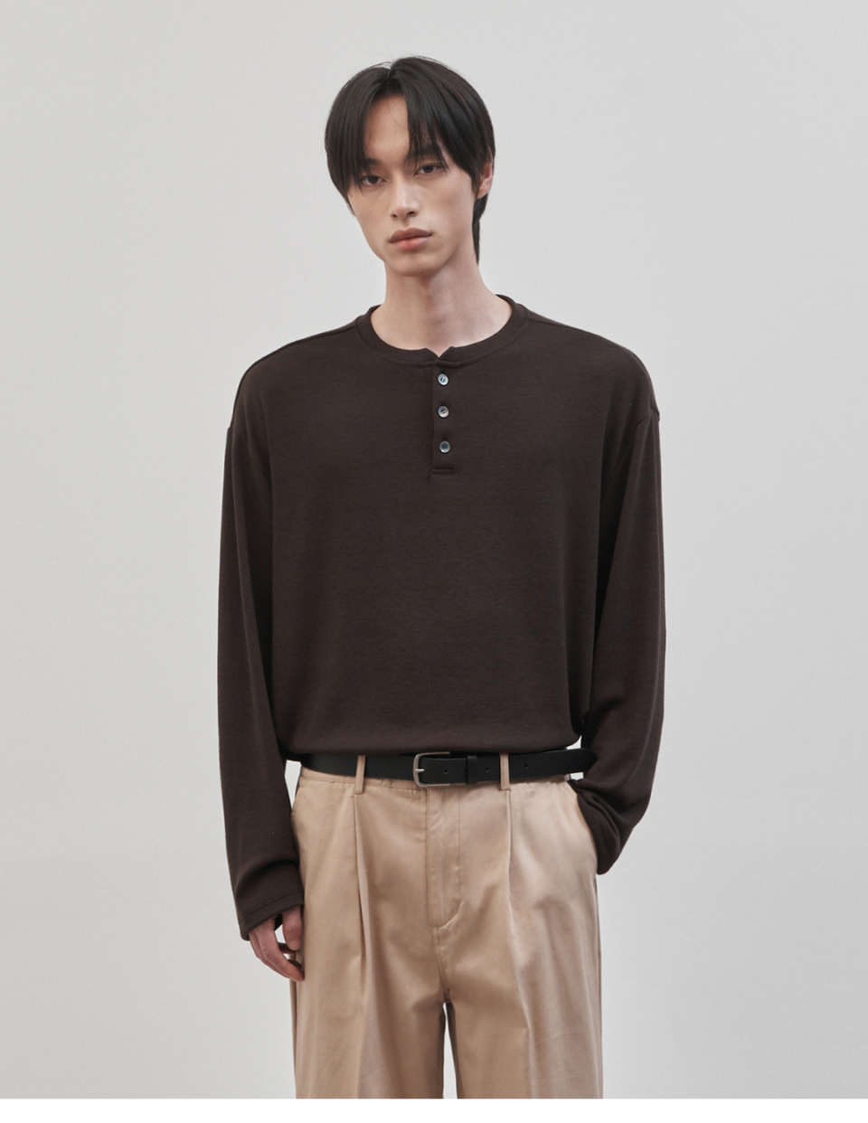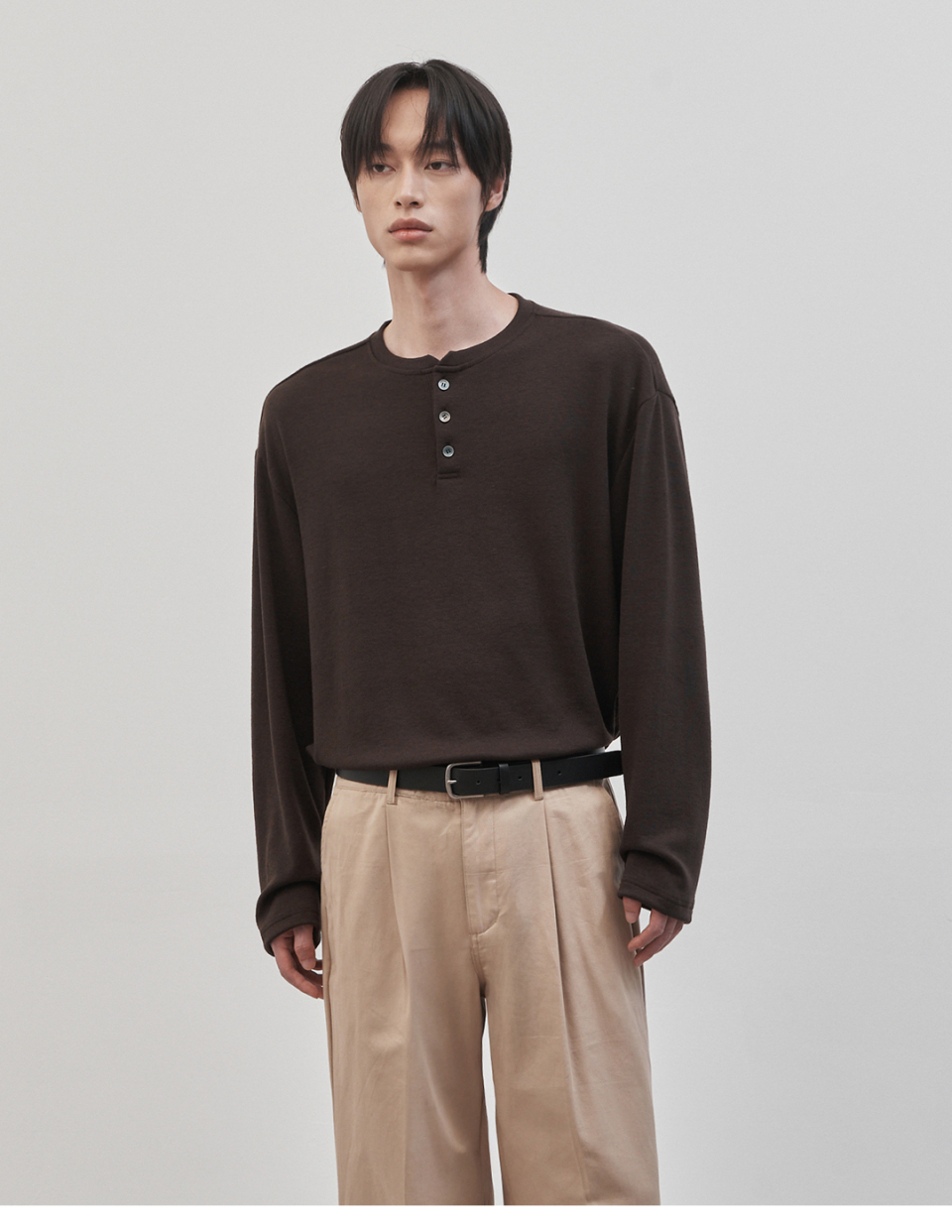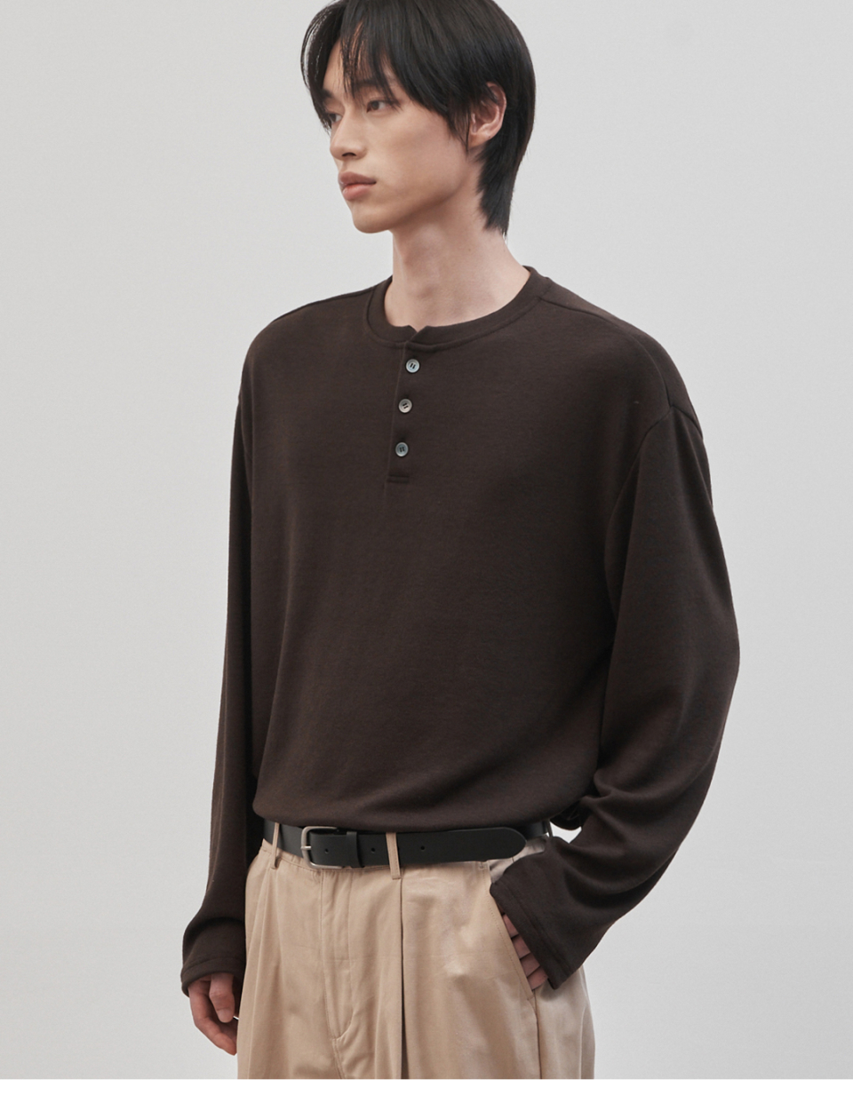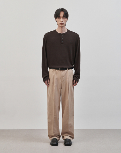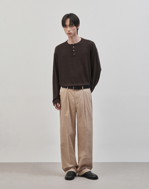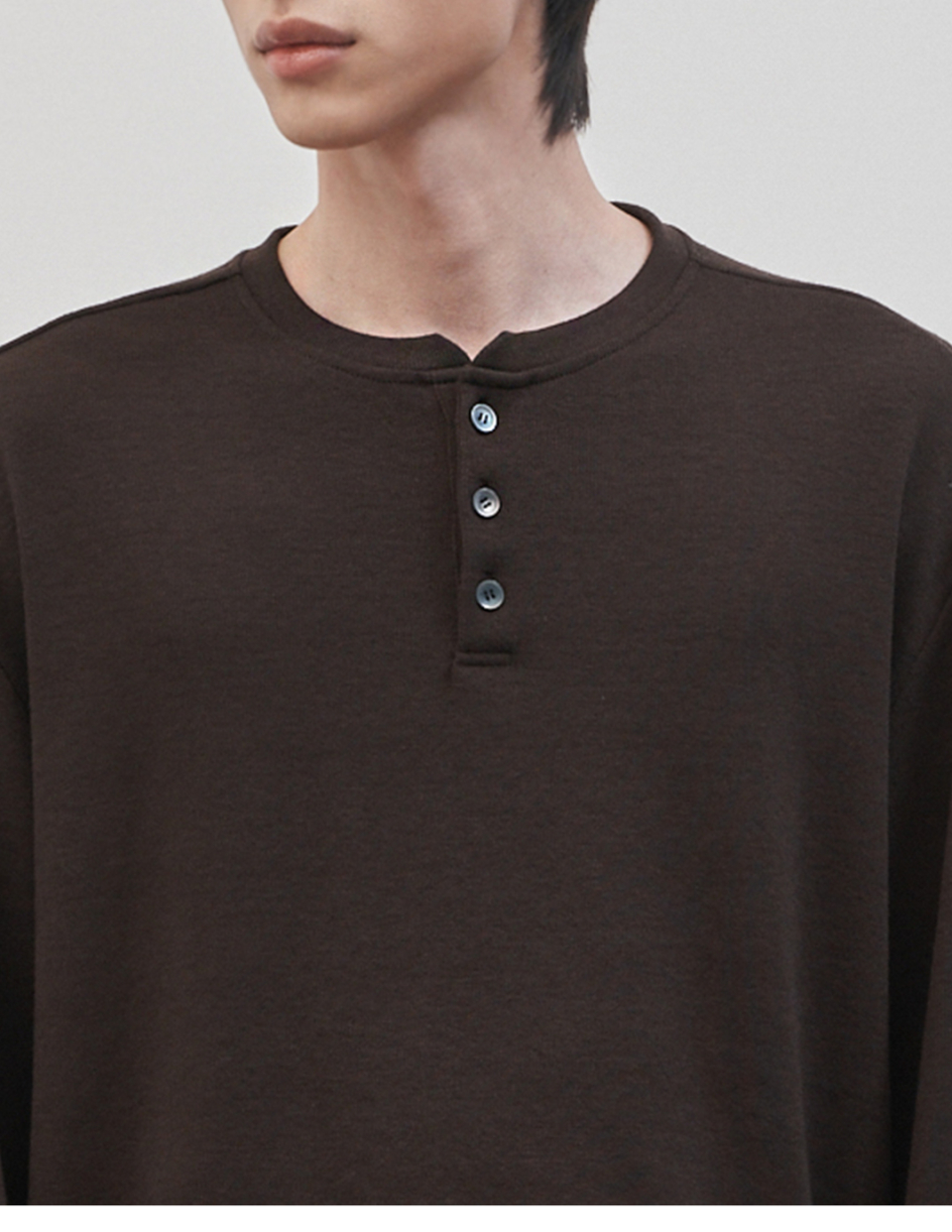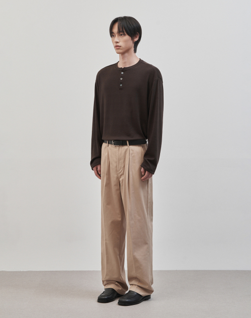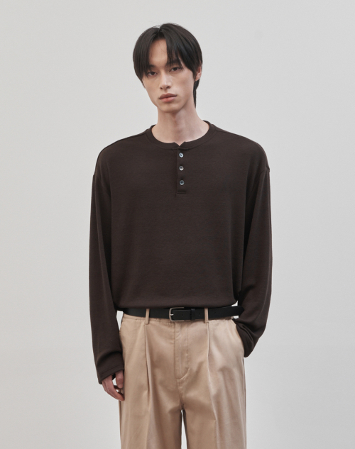 레스티드 세미 오버핏 헨리넥 니트 [브라운]