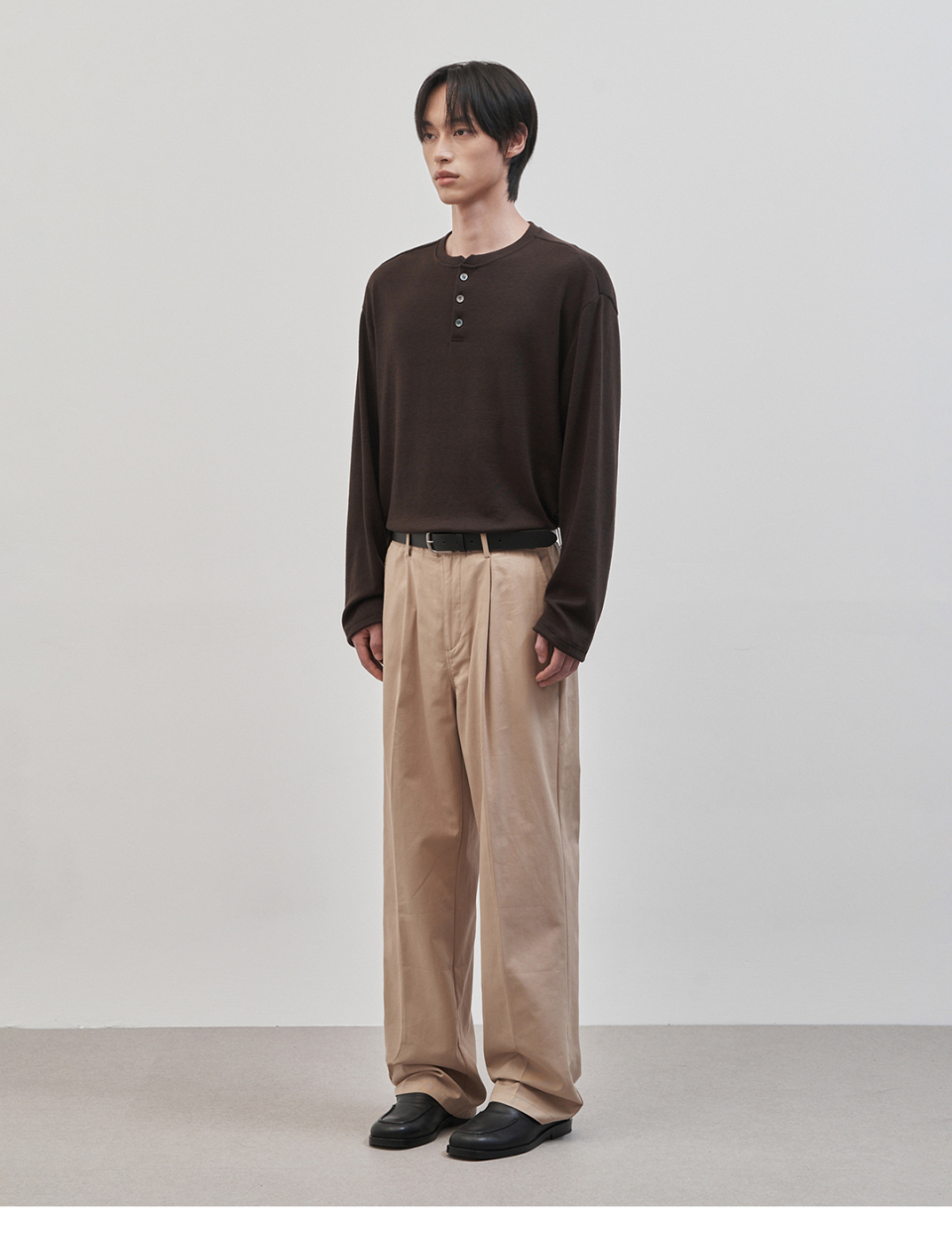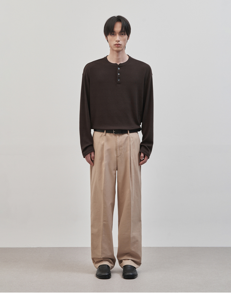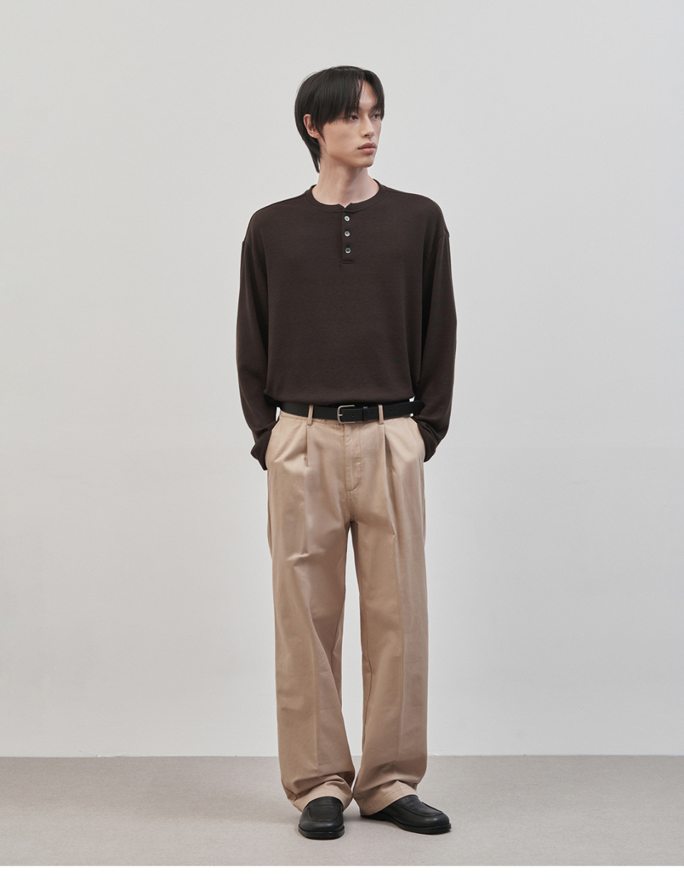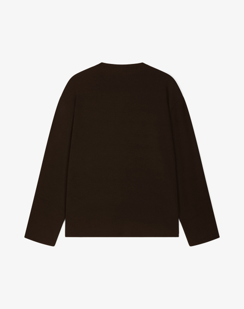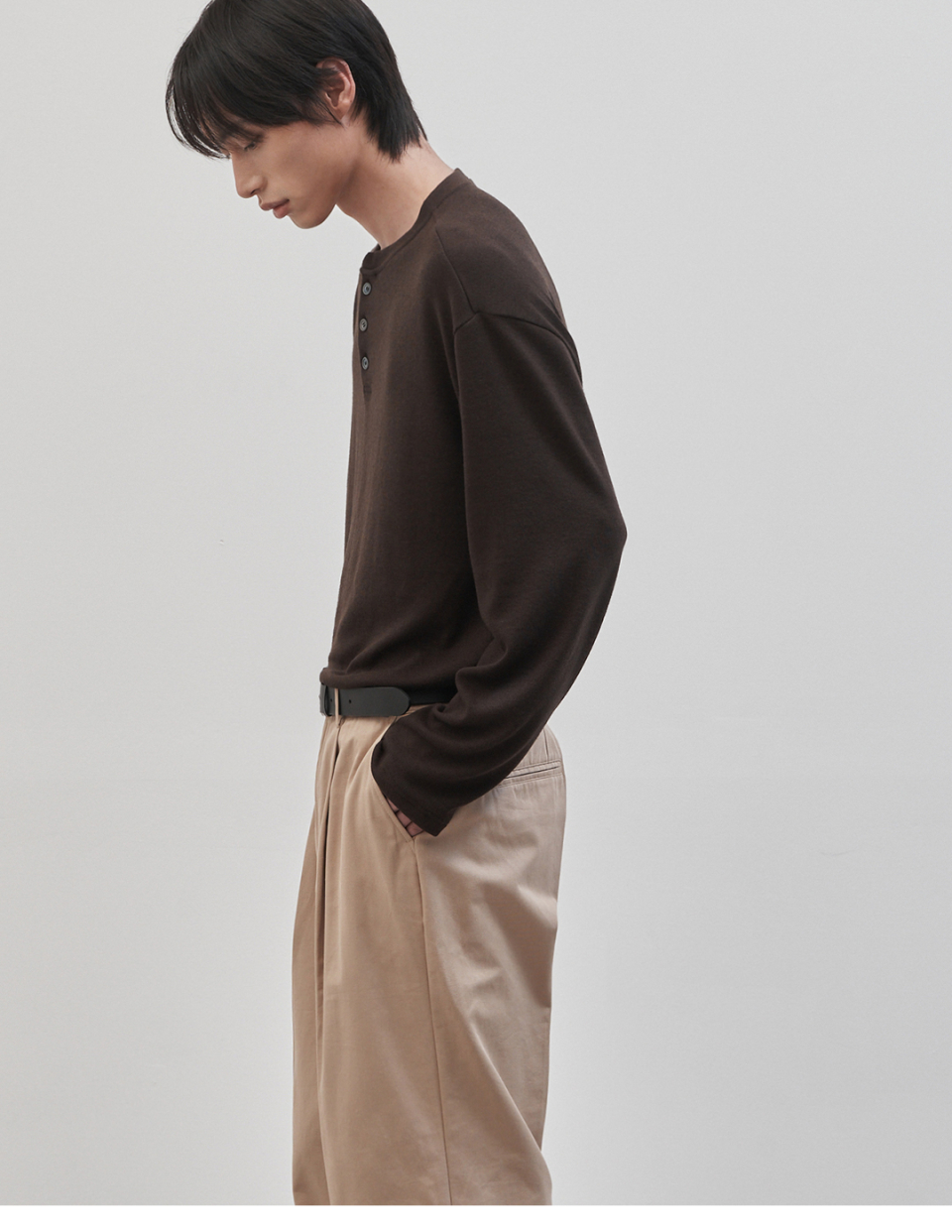 레스티드 세미 오버핏 헨리넥 니트 [브라운]