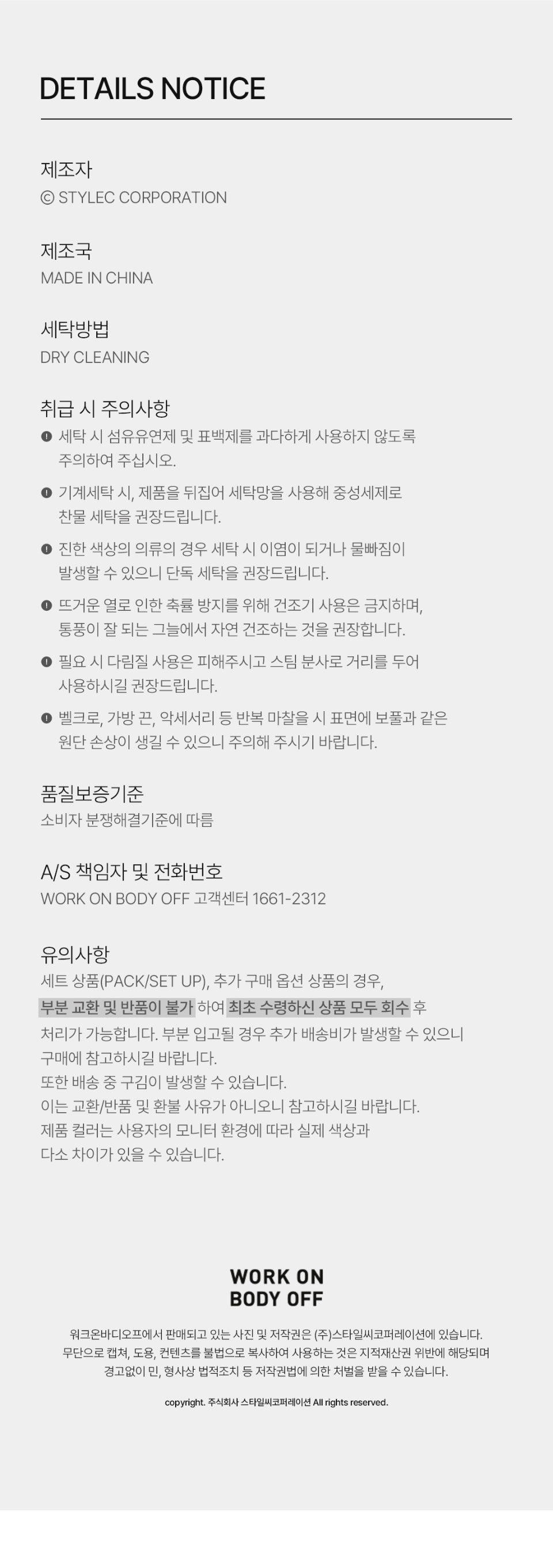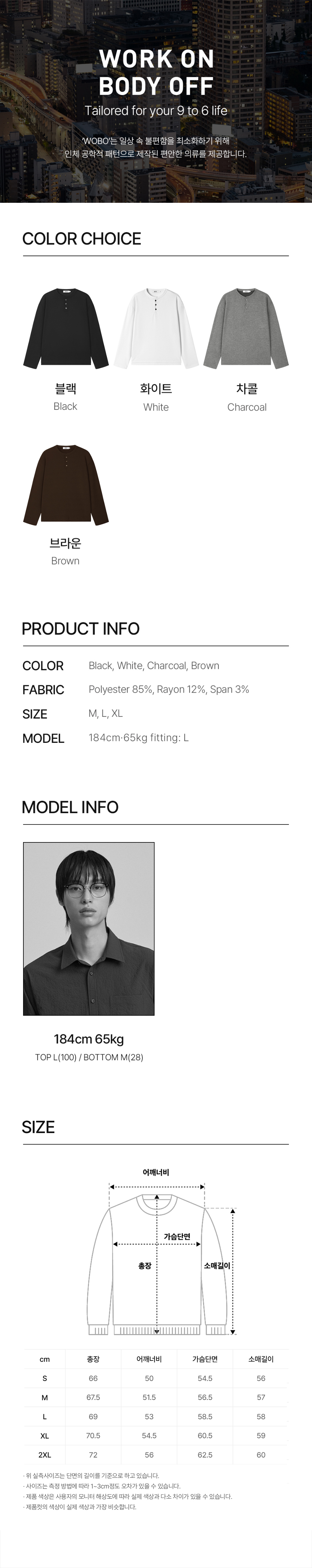 워크온바디오프(WORK ON BODY OFF)는 일상 속 불편함을 최소화 시키고자 탄생한 '오피스 워크 웨어' 브랜드입니다.