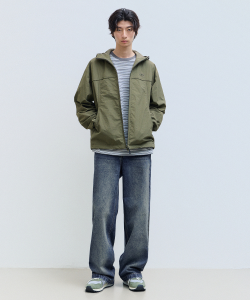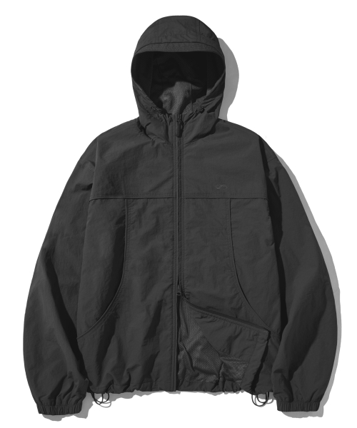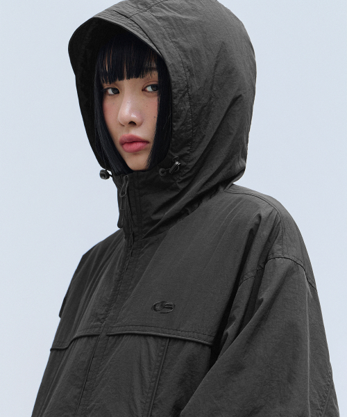 빈티지 피그먼트 워크 후드 자켓 차콜