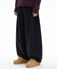 코튼 사이드 턱 벌룬 팬츠-블랙