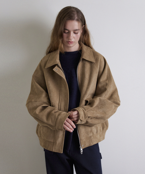 보이핏 히든 버튼 레더 블루종_Suede Beige