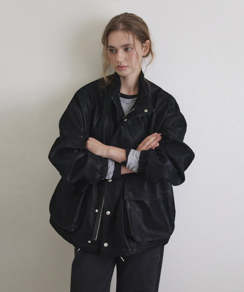 오버핏 필드 숏 레더 자켓_Subtle Black