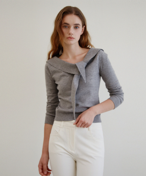 세일러 카라 슬림핏 니트_Dim Gray