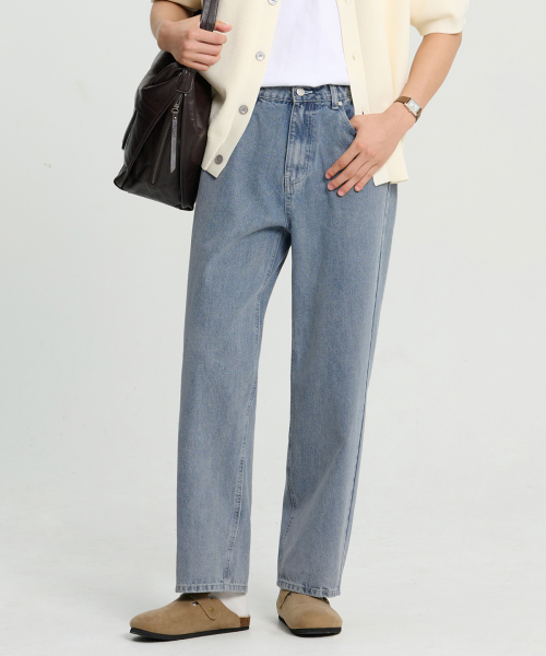 클린 세미 와이드 하프밴딩 데님 팬츠 (Light Blue)