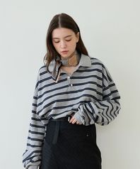 ESSENTIAL STRIPE COLLAR T-SHIRT_GREY