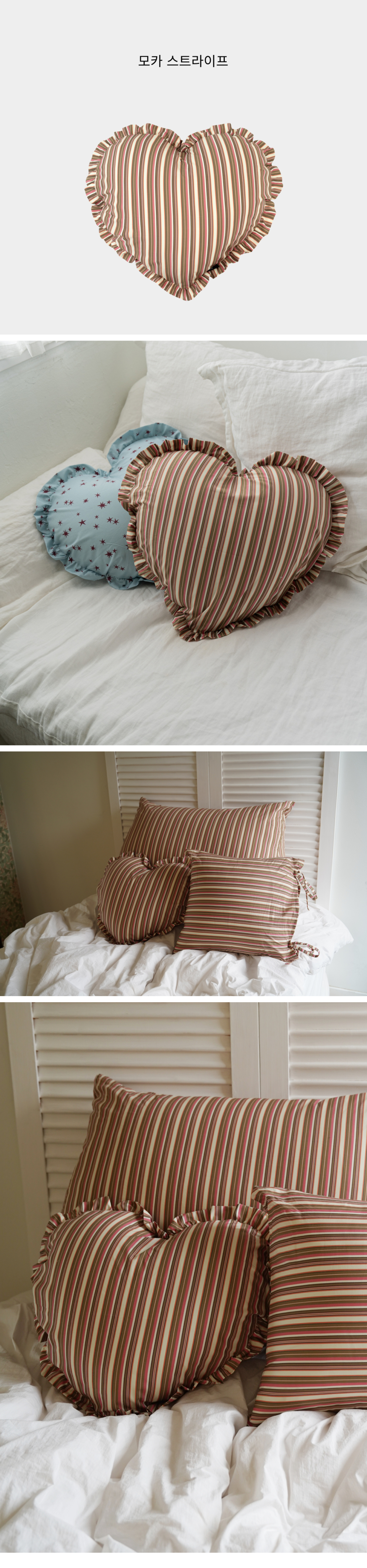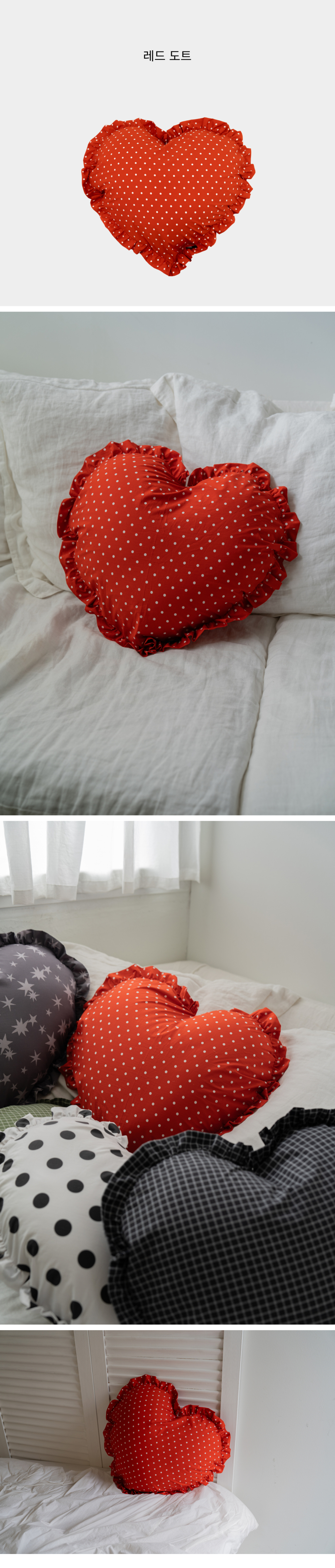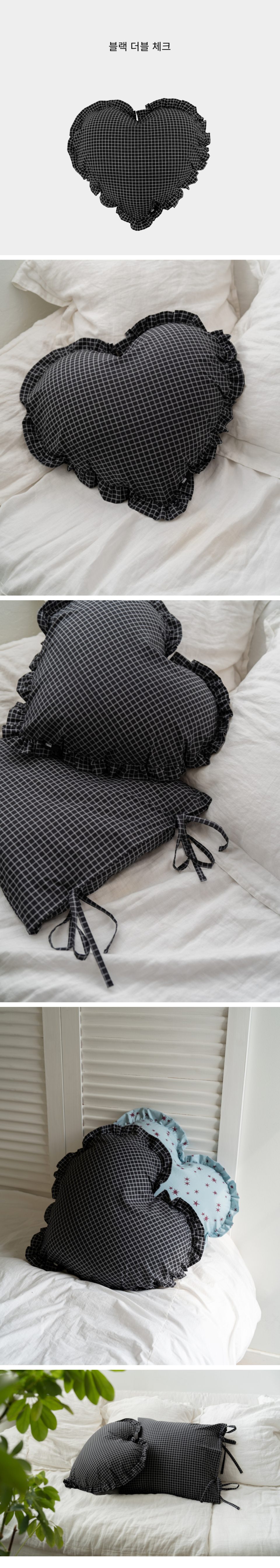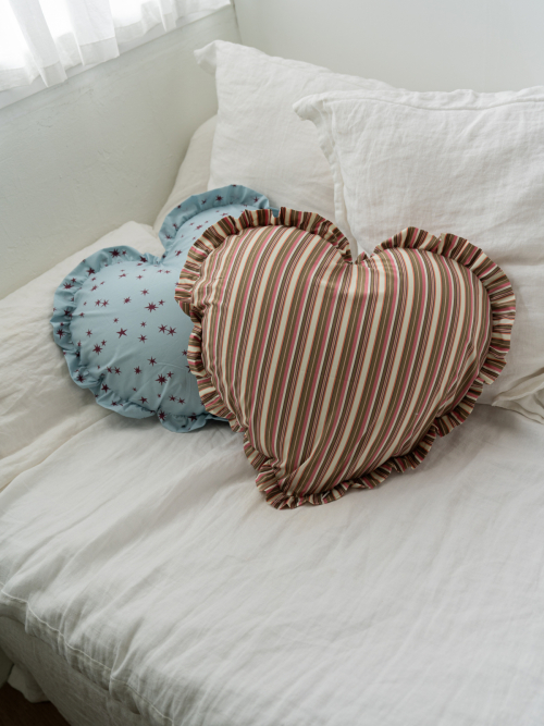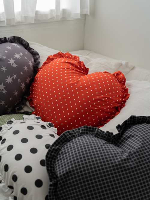 레트로 패턴 순면 프릴 하트 쿠션 커버