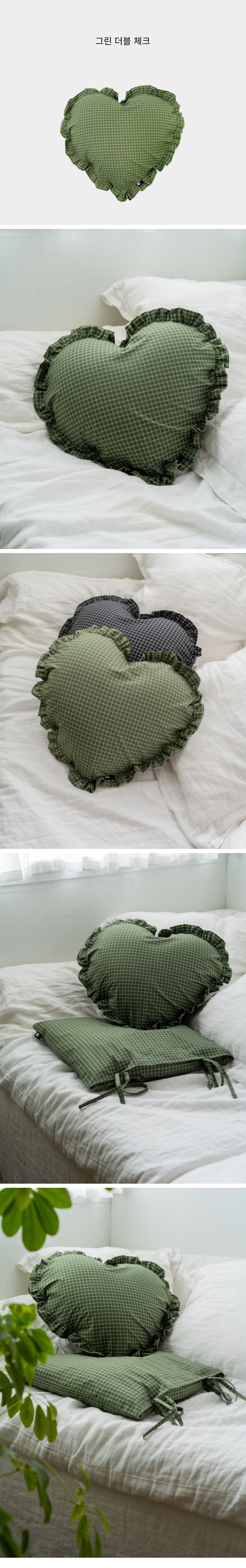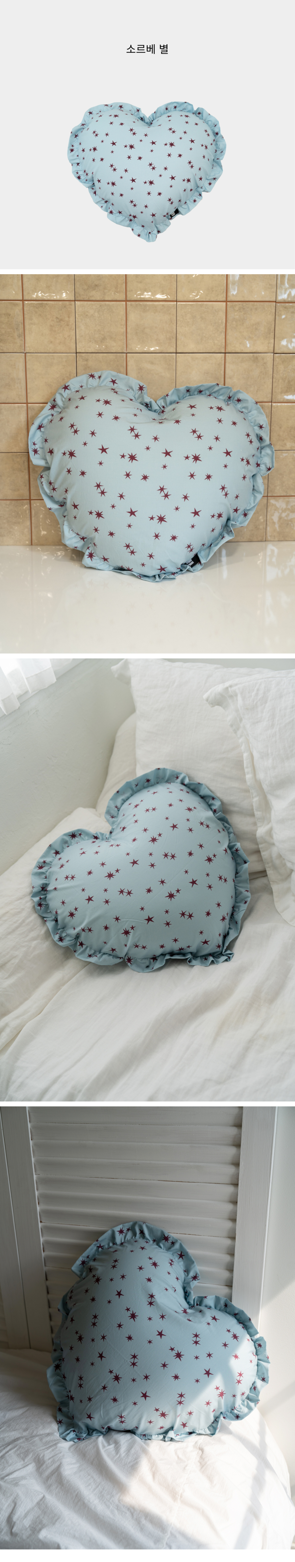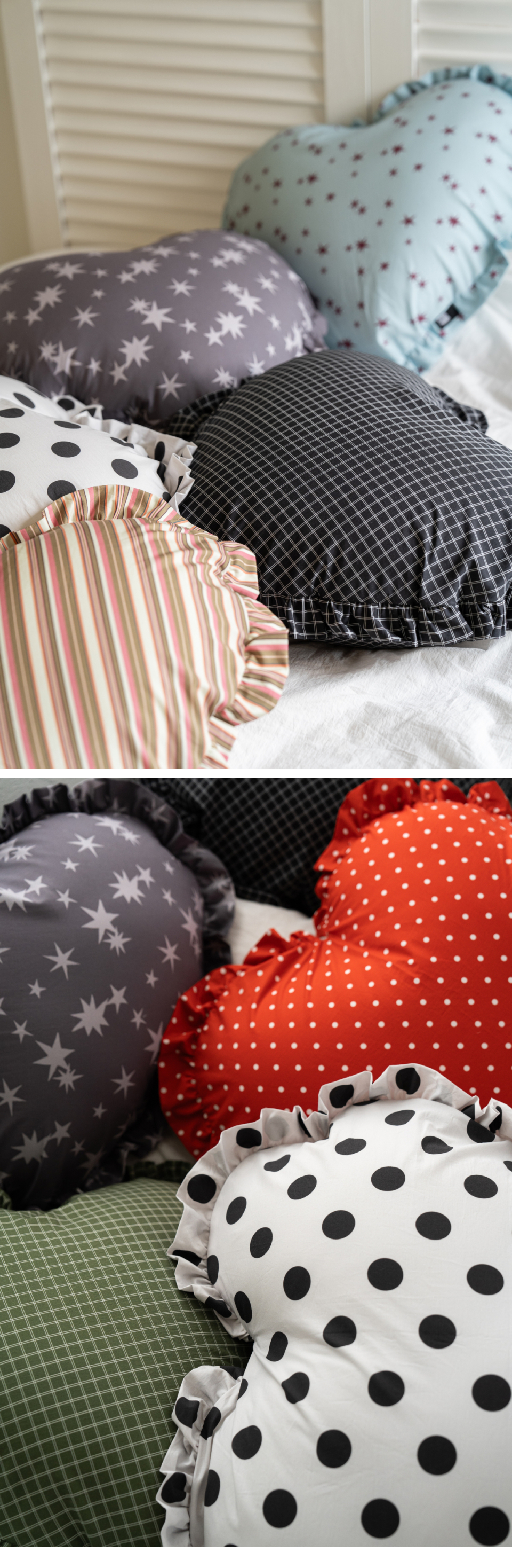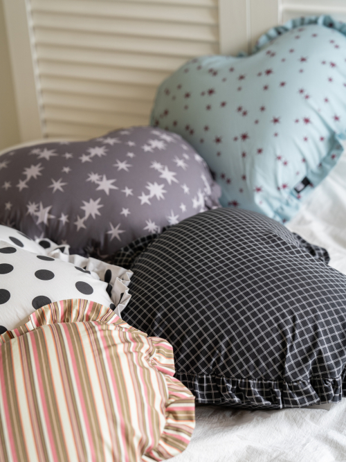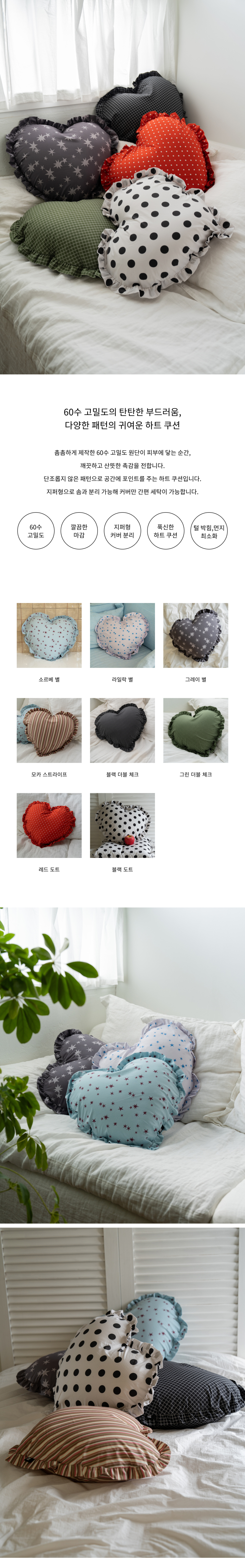 레트로 패턴 순면 프릴 하트 쿠션 커버