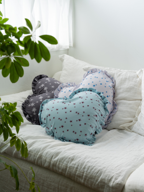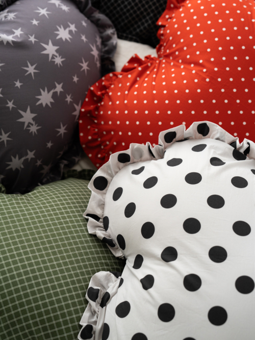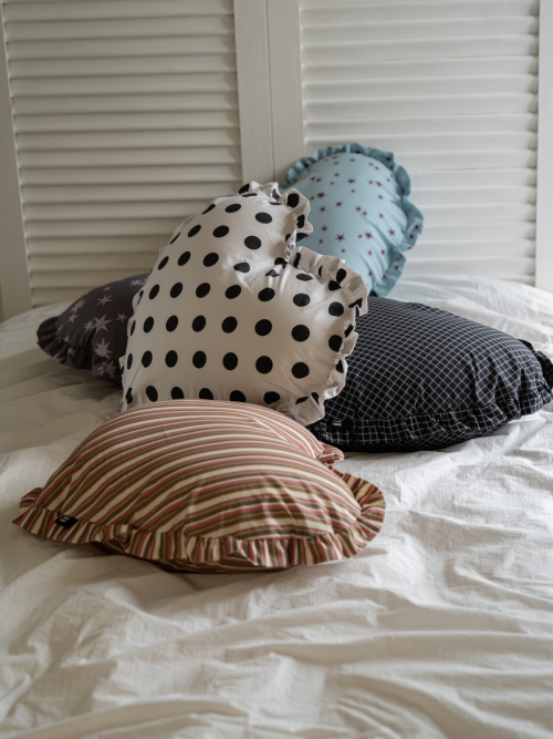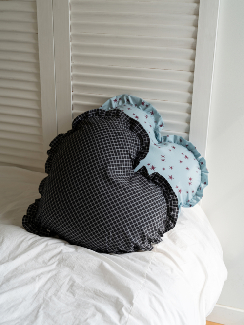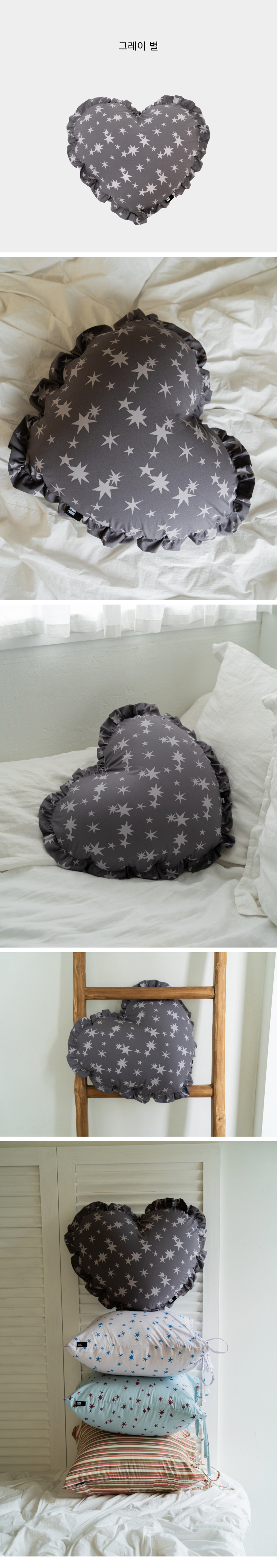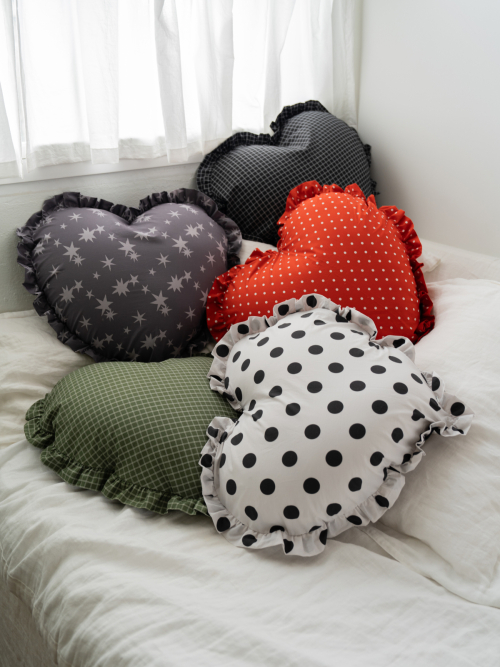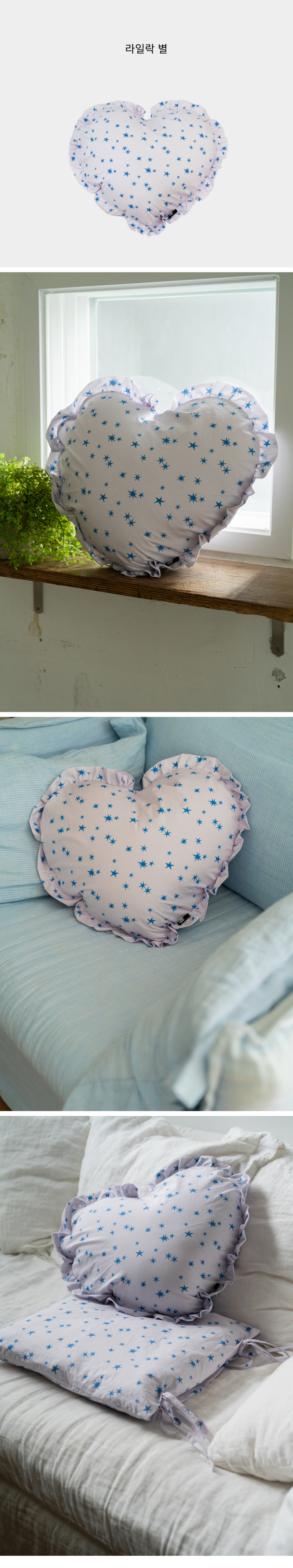 레트로 패턴 순면 프릴 하트 쿠션 커버
