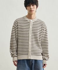 로우 스트라이프 크롭 니트 가디건 [크림베이지]
