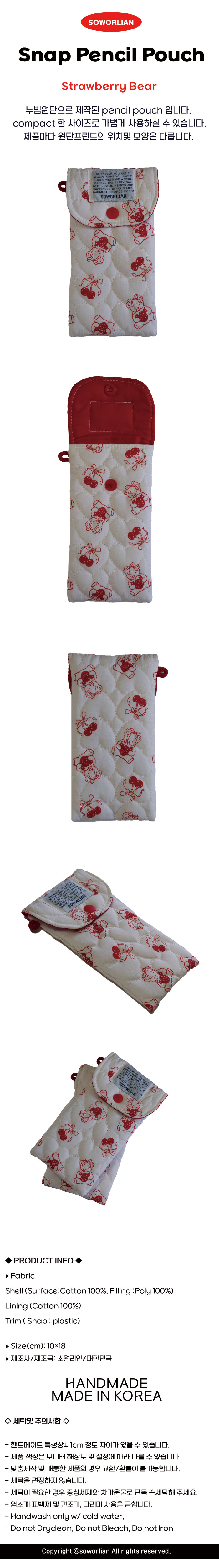 똑딱필통 펜슬파우치_ 딸기곰