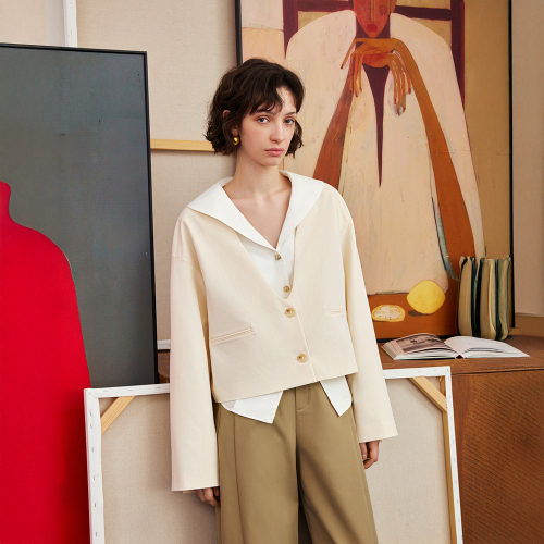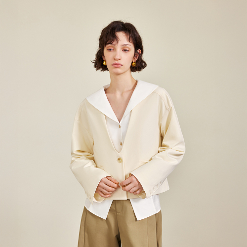YY_V-neck single-breasted jacket