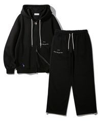스마일 자수 로고 2WAY 버튼 후드집업 세미와이드 팬츠 셋업 BK7985_9985