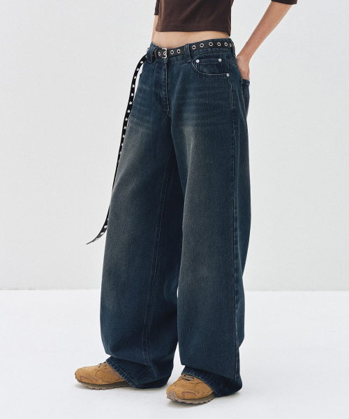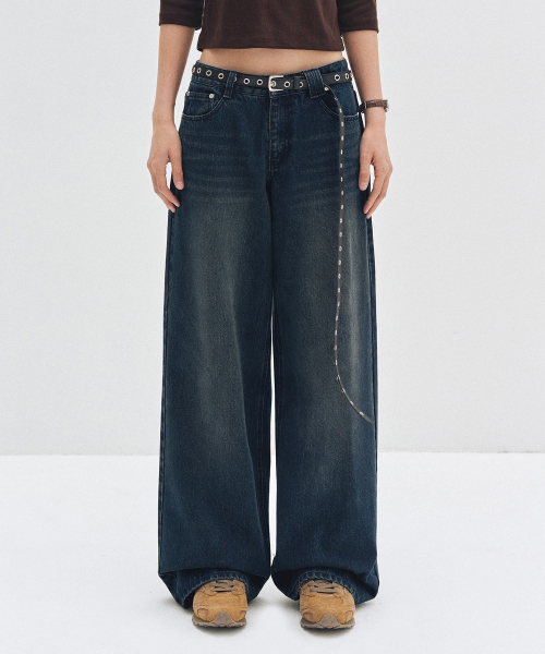 Signature Low Rise Wide Jeans DCWPT004DBLUE