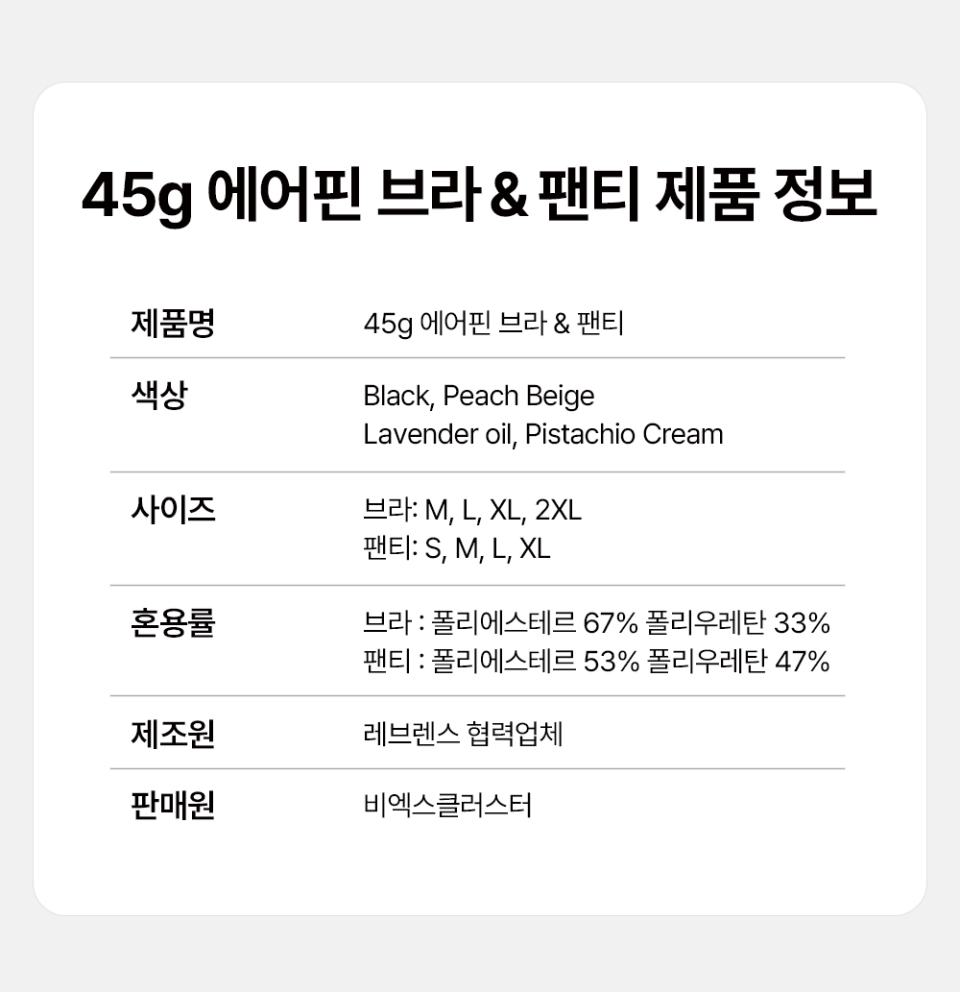 45g 에어핀 브라&팬티 세트_ 블랙