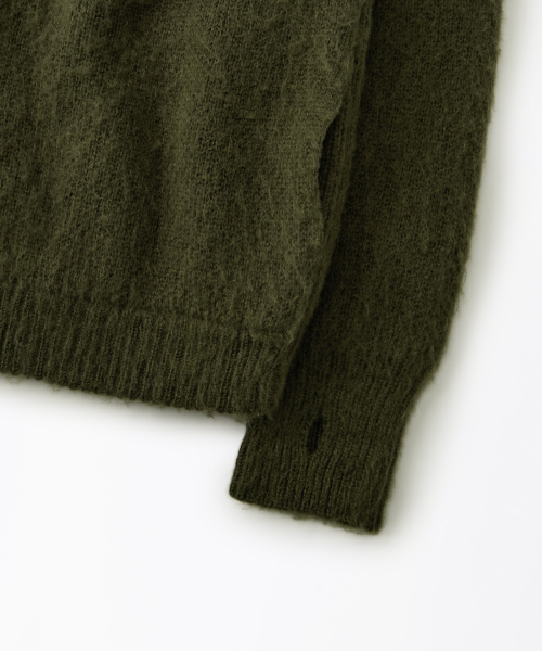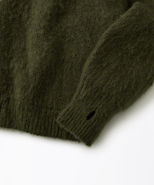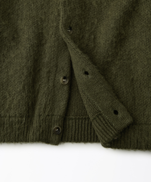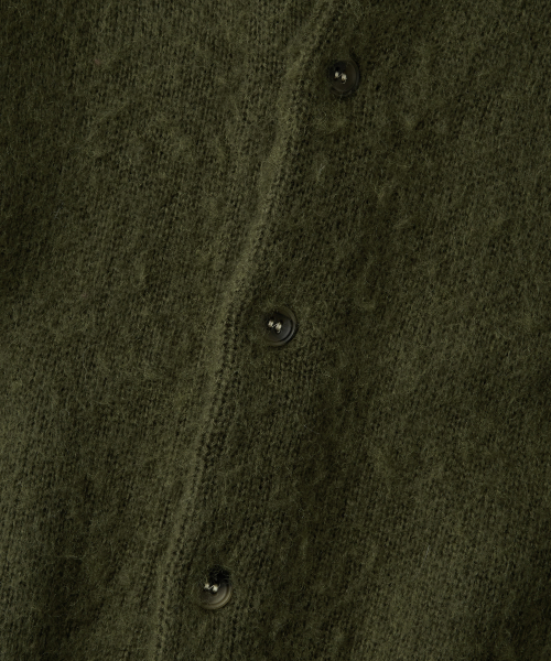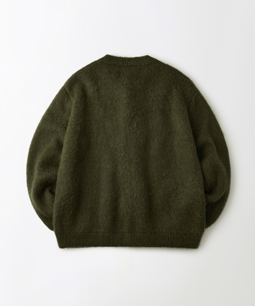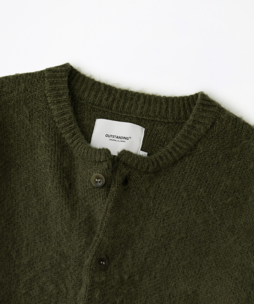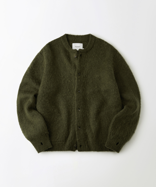 BRUSHED WOOL ROUND NECK CARDIGAN_MELANGE OLIVE