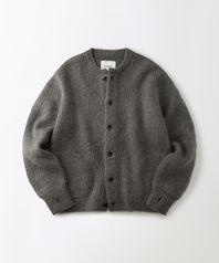 BRUSHED WOOL ROUND NECK CARDIGAN_MELANGE GRAY