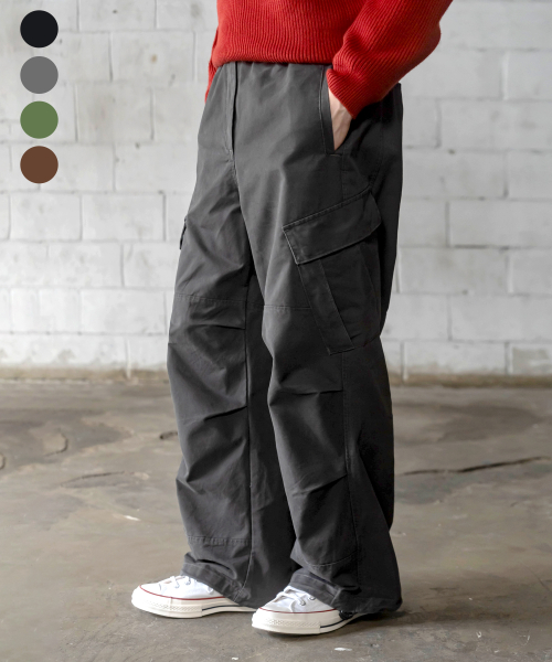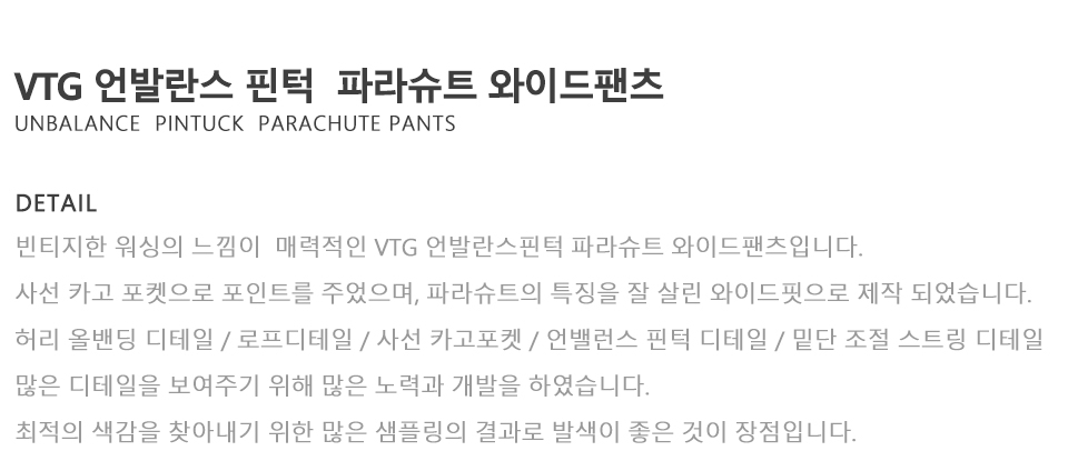 VTG 언발란스 핀턱 파라슈트 와이드팬츠_3color