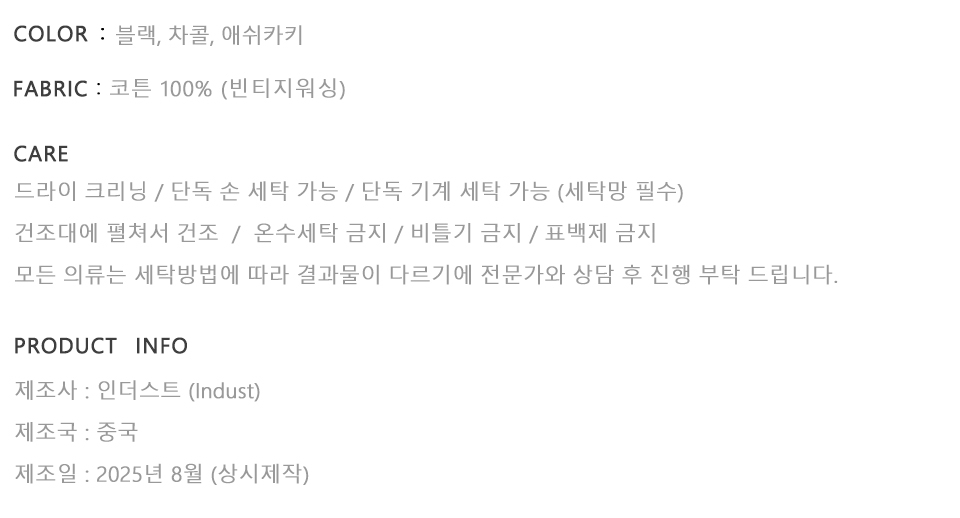 인더스트(INDUST)는 오래 입을수록 가치를 더하는 디자인을 추구하며, 기본에 충실하고 조화로운 디자인을 바탕으로 소재와 실루엣을 기반으로 트렌디한 무드를 선보입니다.