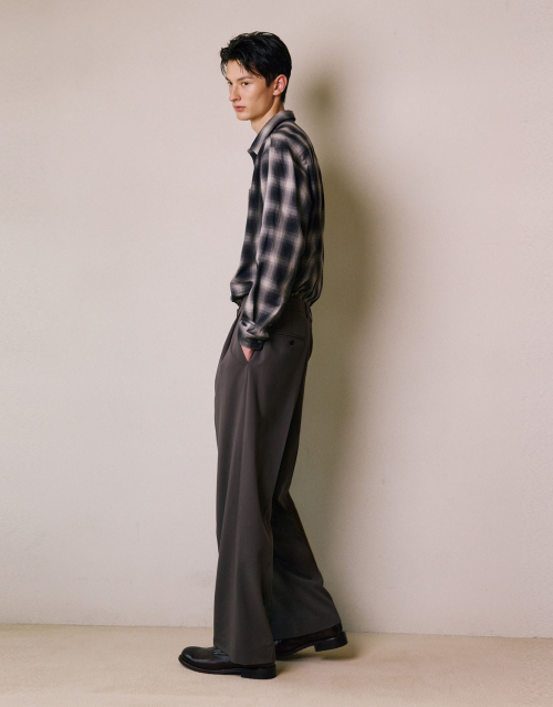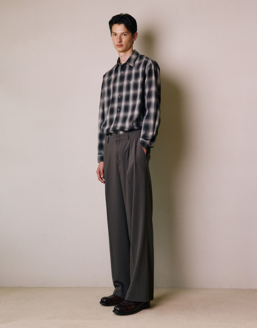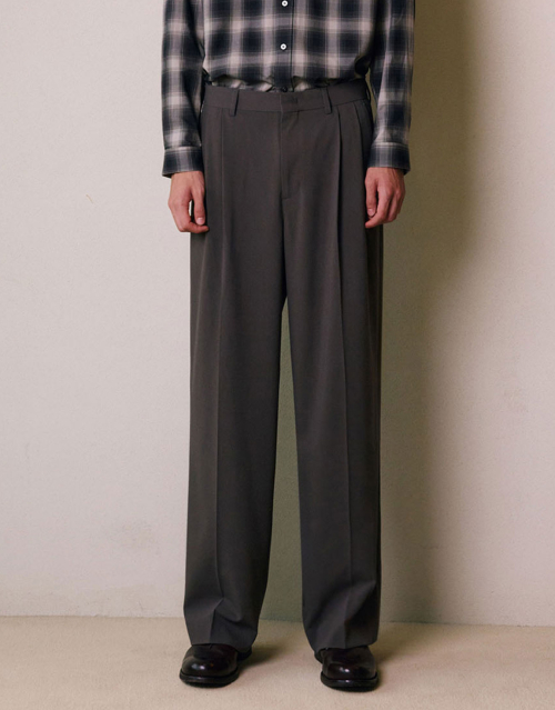 투턱 밴딩 와이드 슬랙스 [DARK BROWN]