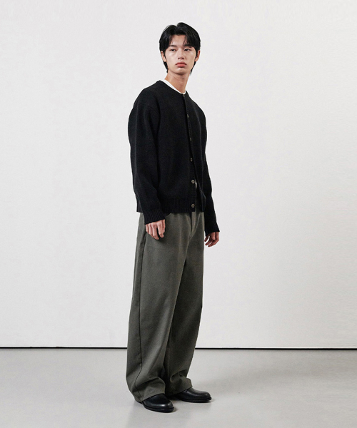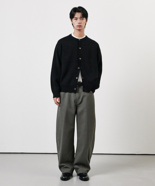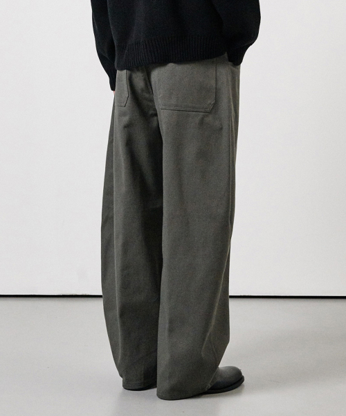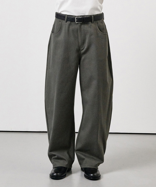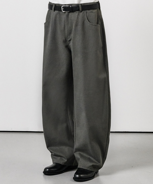 커브드 와이드 코튼 데님 팬츠 차콜그레이