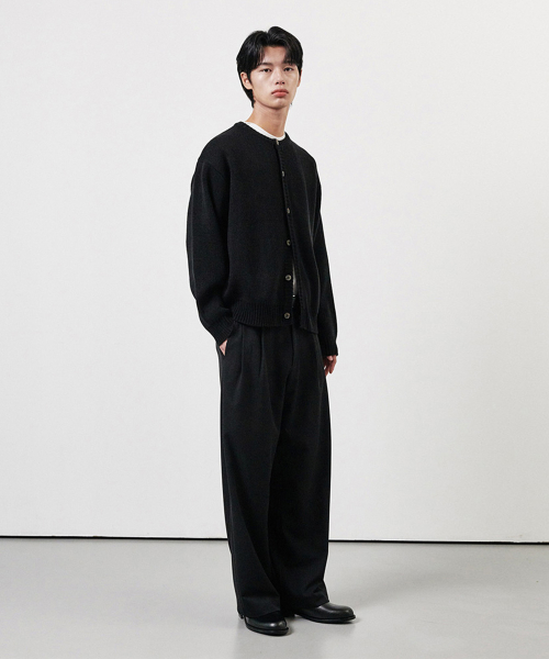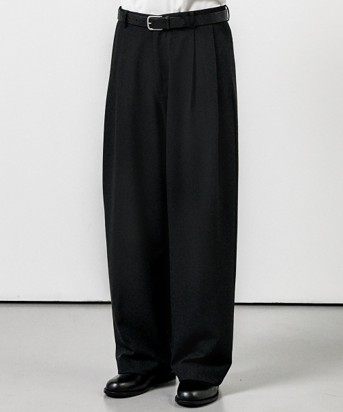 투턱 와이드 슬랙스 블랙