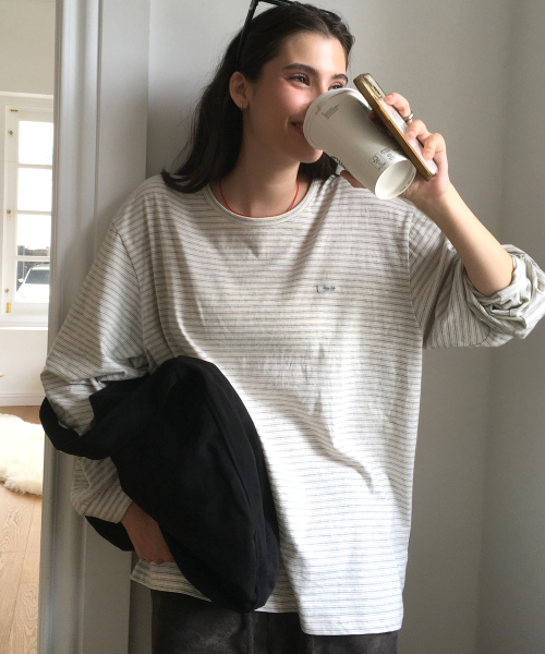 VINTAGE DOUBLE RIBBON LONG SLEEVE CHARCOAL