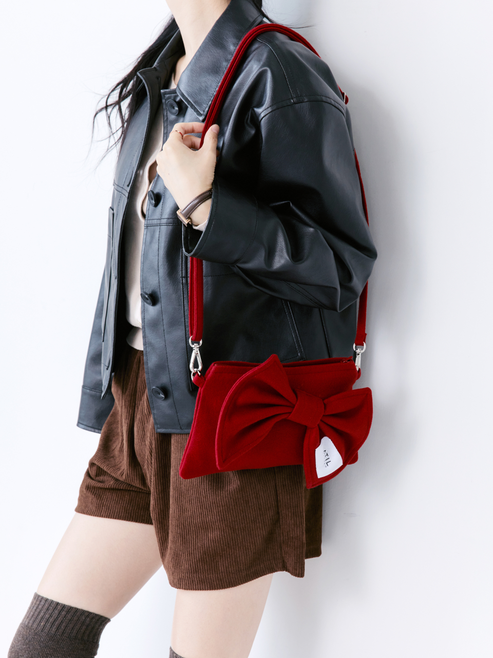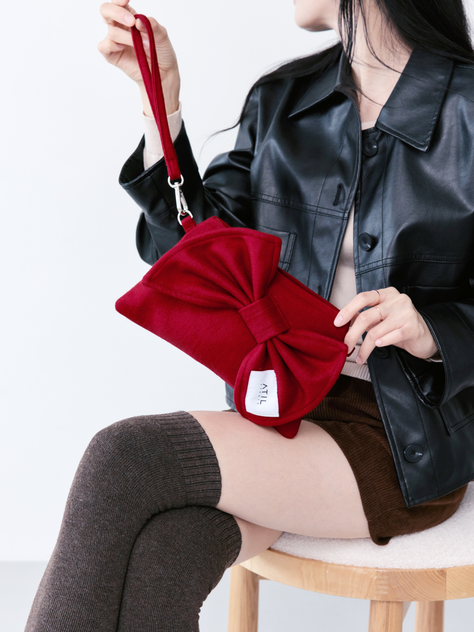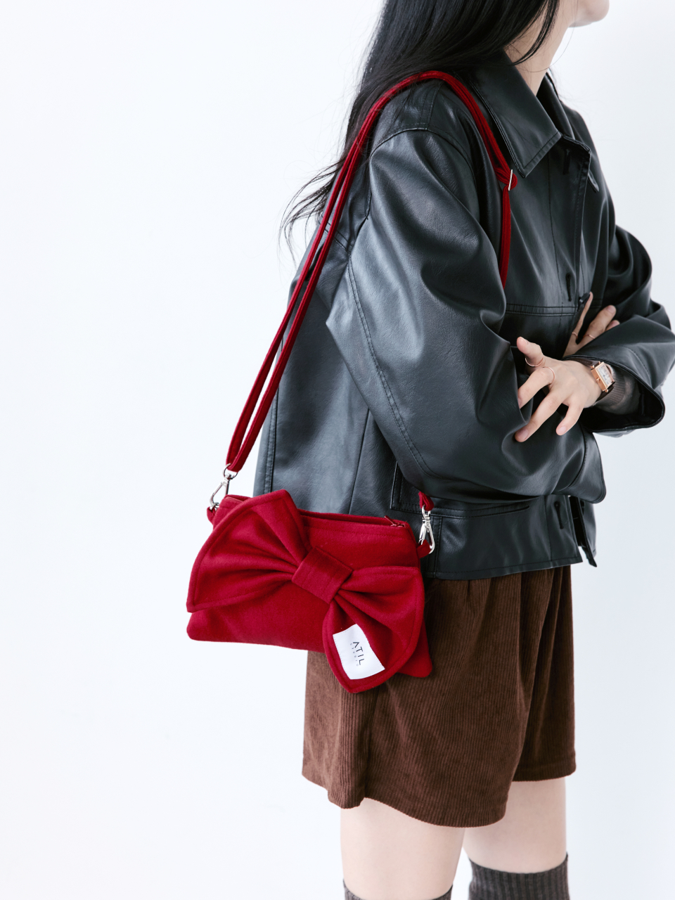 셰리 울 리본 크로스 앤 숄더 클러치 백 _ [레드]