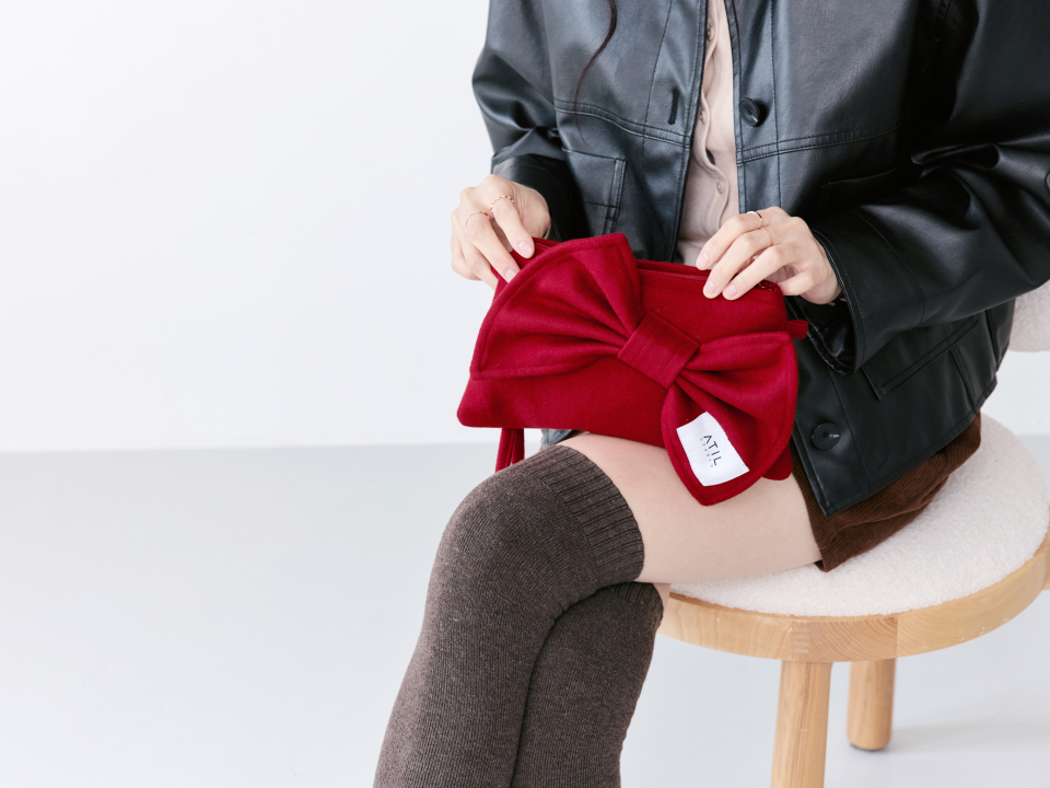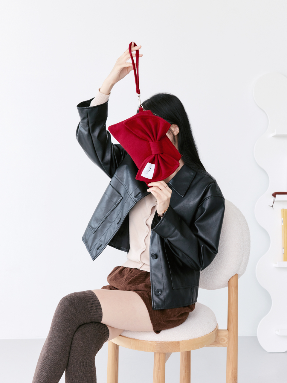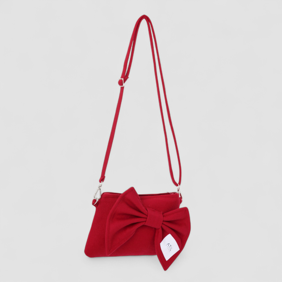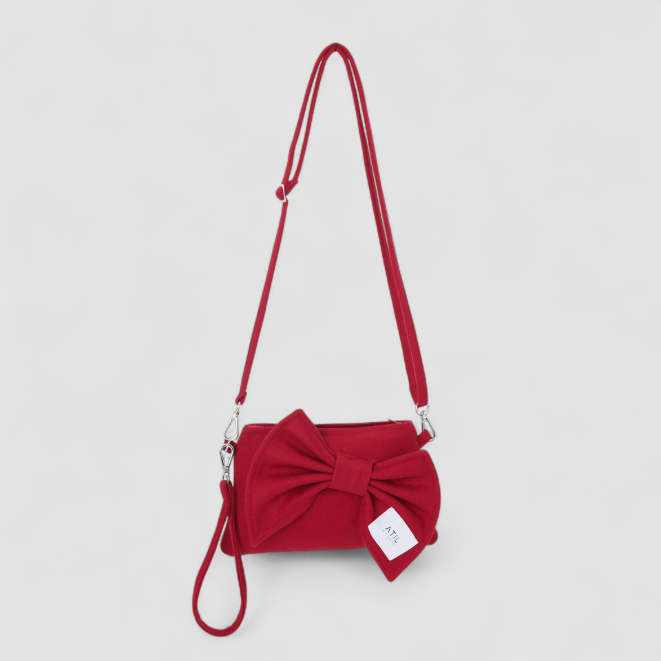 셰리 울 리본 크로스 앤 숄더 클러치 백 _ [레드]