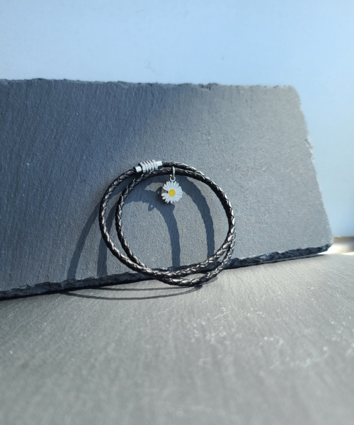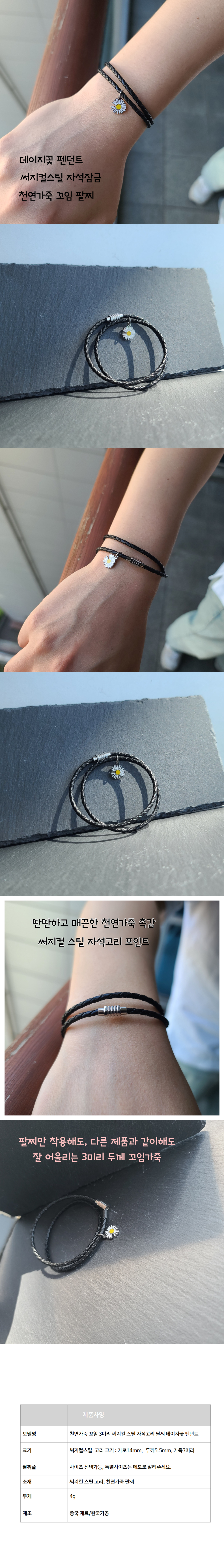 써지컬 스틸 데이지꽃 자석고리 3mm 천연가죽꼬임 팔찌 사이즈 선택