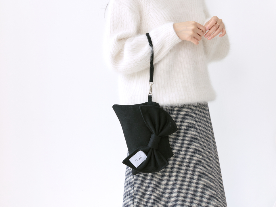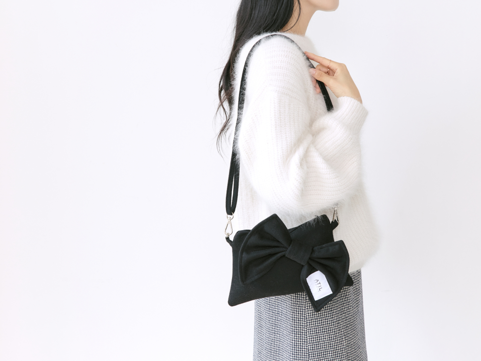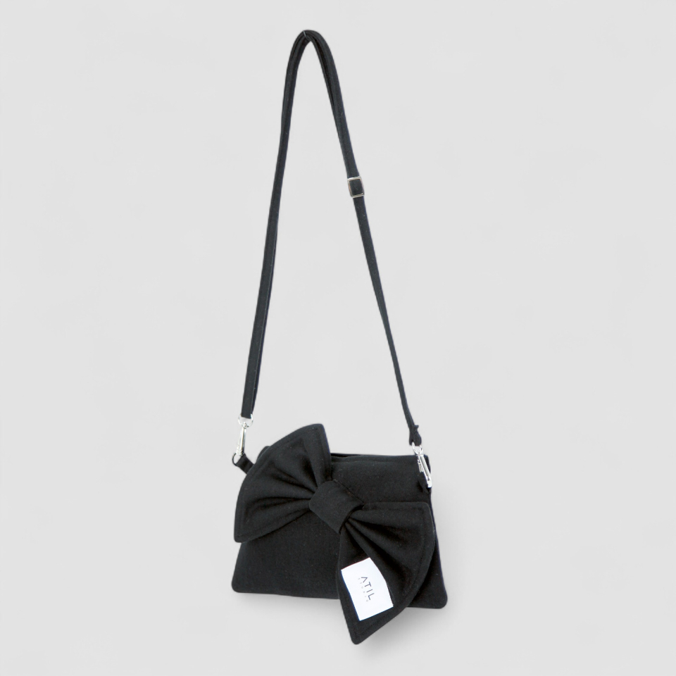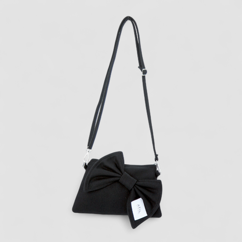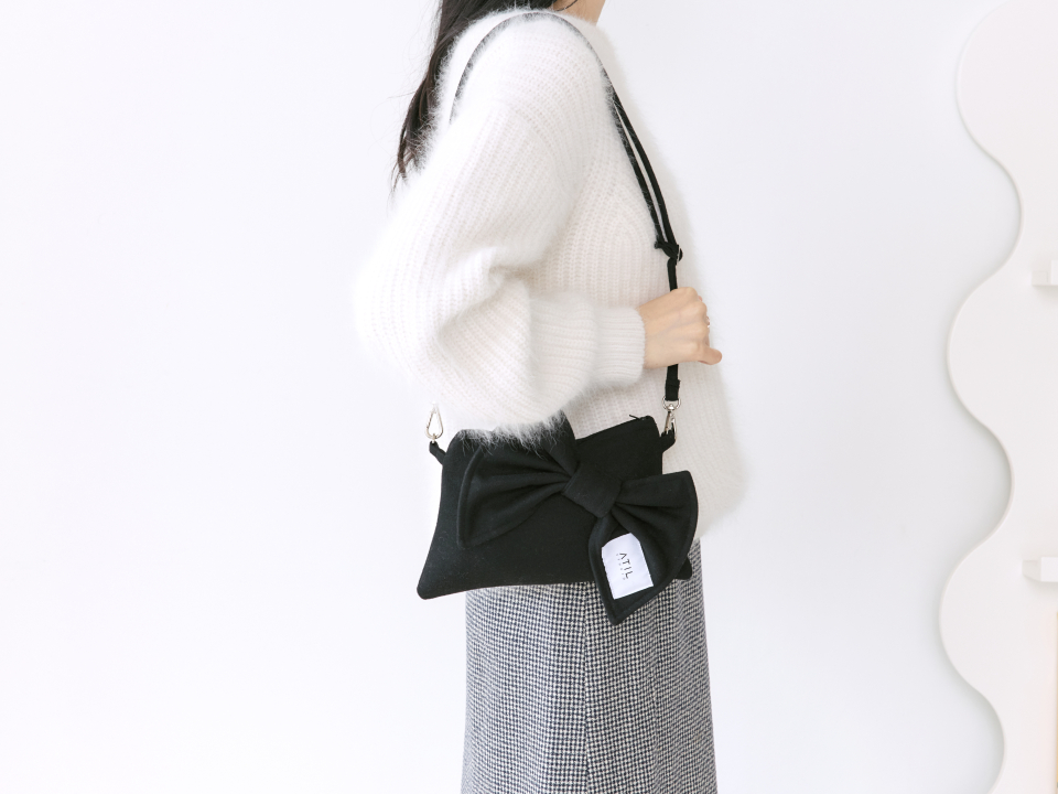 셰리 울 리본 크로스 앤 숄더 클러치 백 _ [블랙]