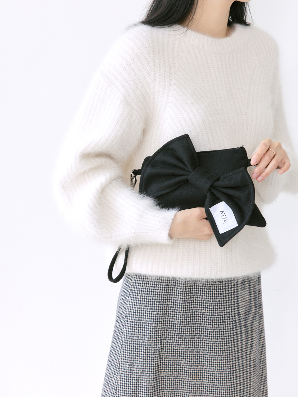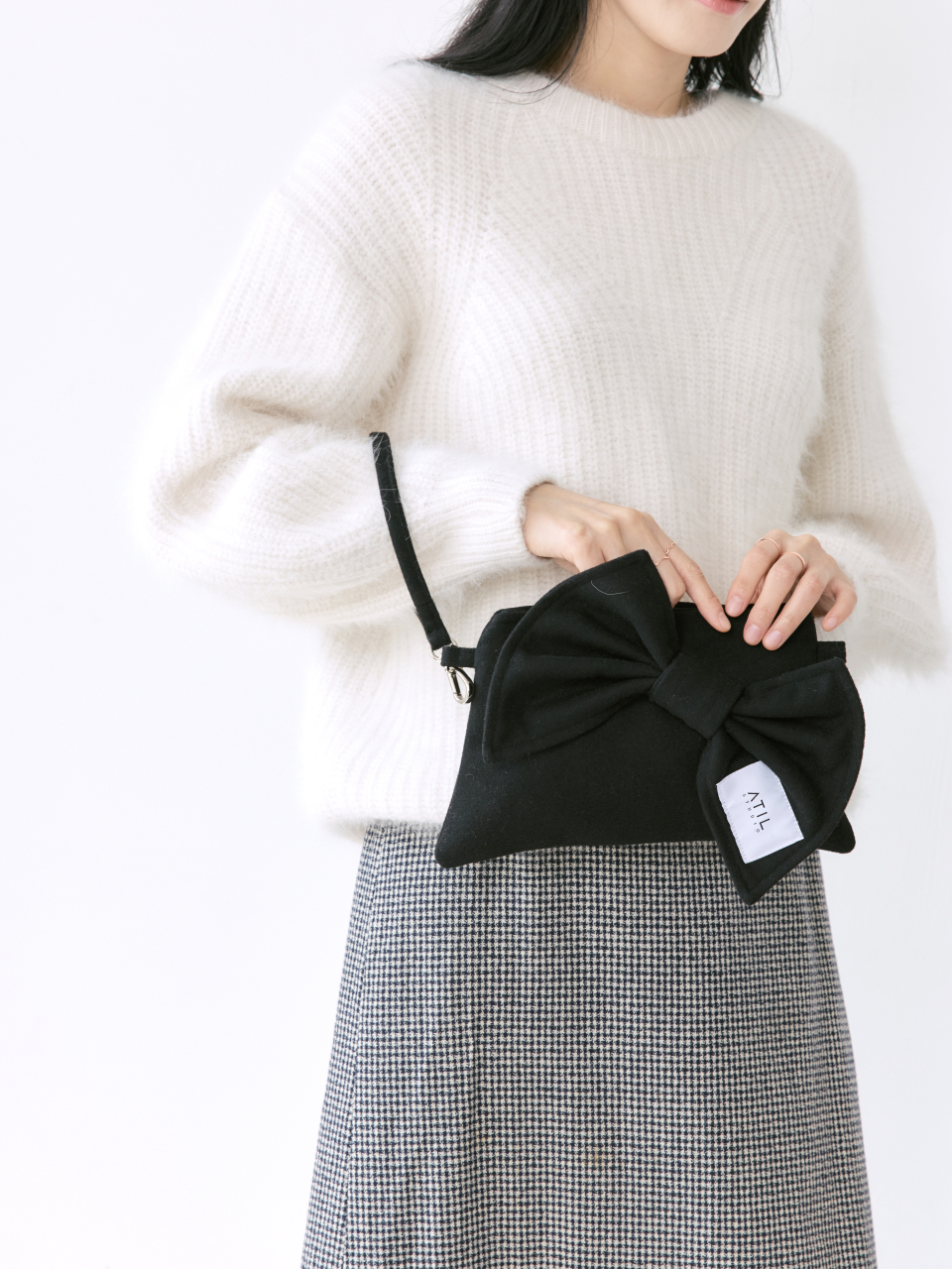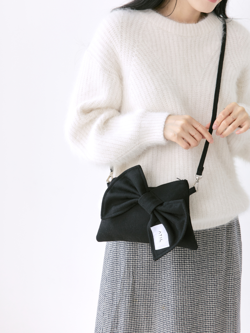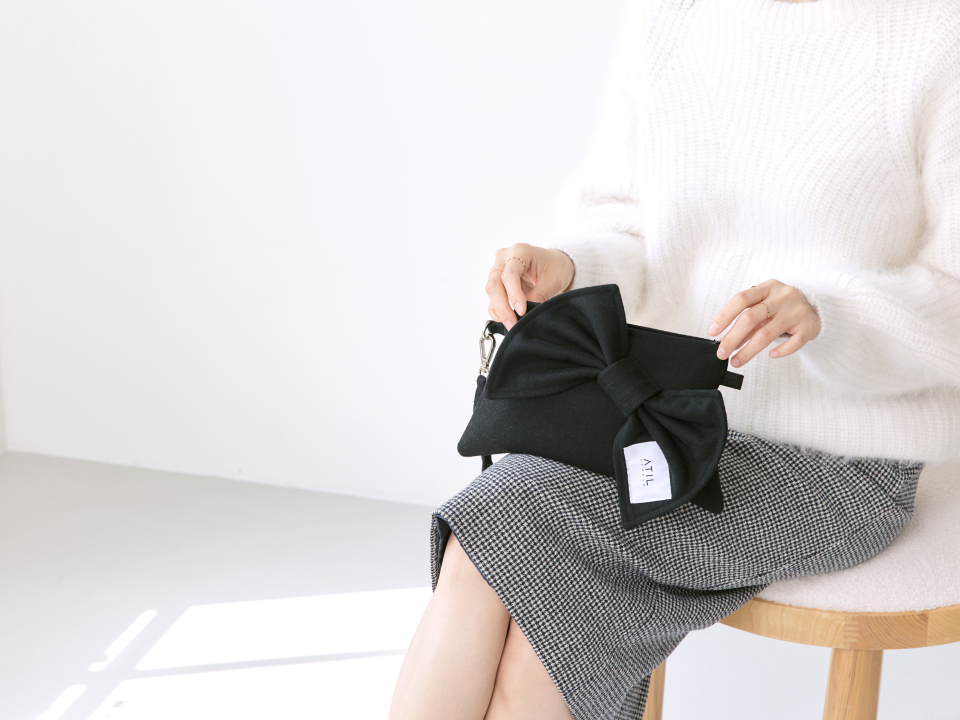 셰리 울 리본 크로스 앤 숄더 클러치 백 _ [블랙]