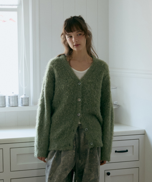 헤비브러쉬 울 가디건-올리브