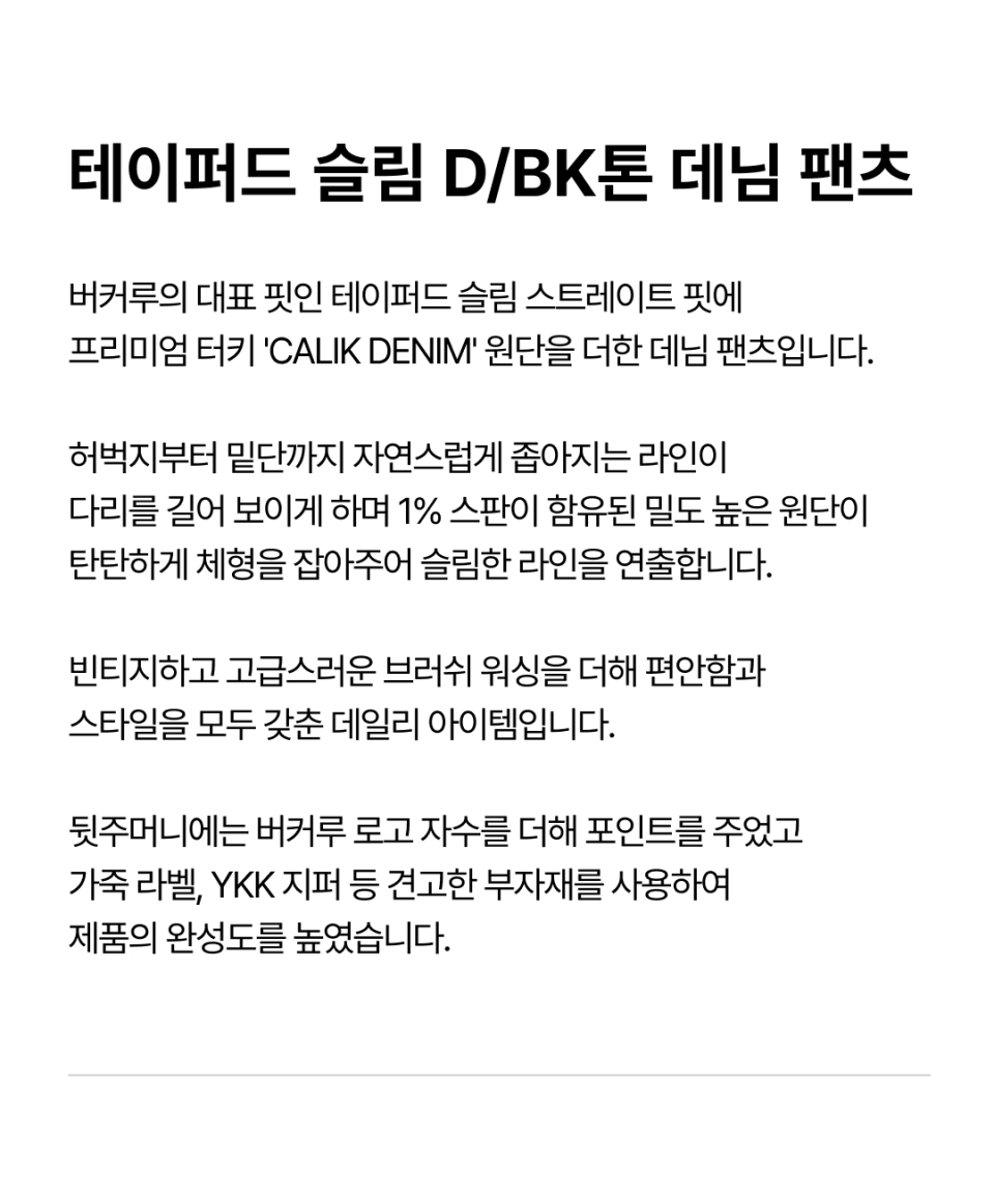 테이퍼드 슬림 D/BK톤 데님 팬츠 블랙