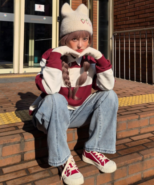 레트로 마운틴 1941 스트라이프 카라 맨투맨 (JR5TSU825BR)
