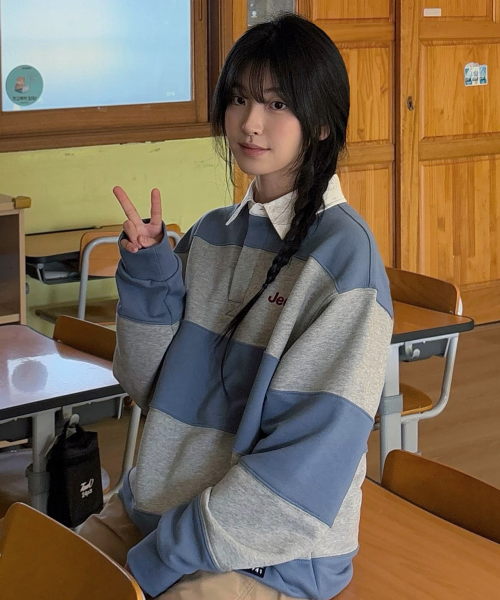 레트로 마운틴 1941 스트라이프 카라 맨투맨 (JR5TSU825SB)