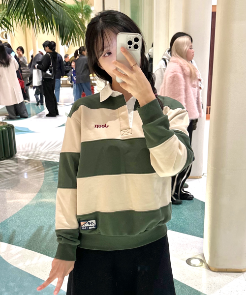 레트로 마운틴 1941 스트라이프 카라 맨투맨 (JR5TSU825GN)