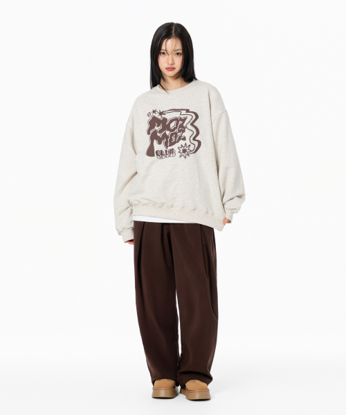 트윙클 그래픽 오버핏 맨투맨 오트밀