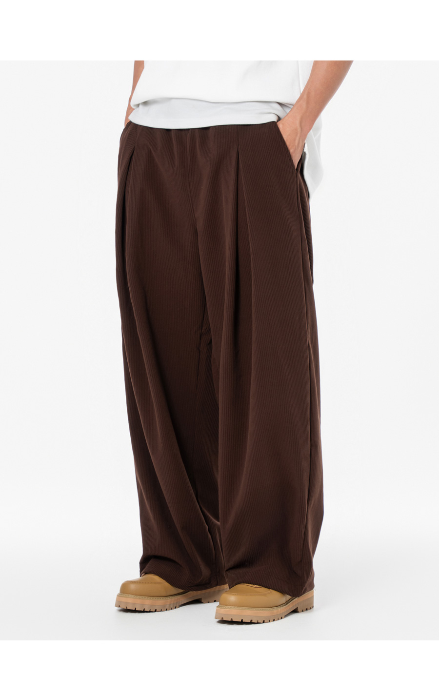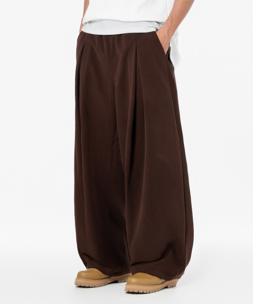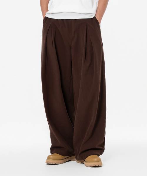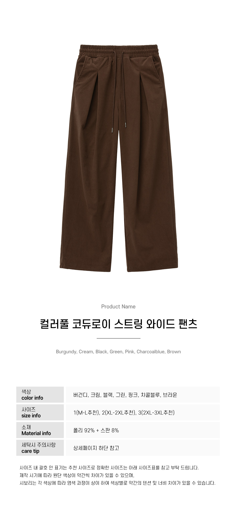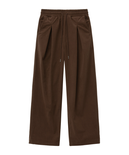 컬러풀 코듀로이 스트링 와이드 팬츠 브라운