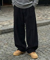 컬러풀 코듀로이 스트링 와이드 팬츠 블랙