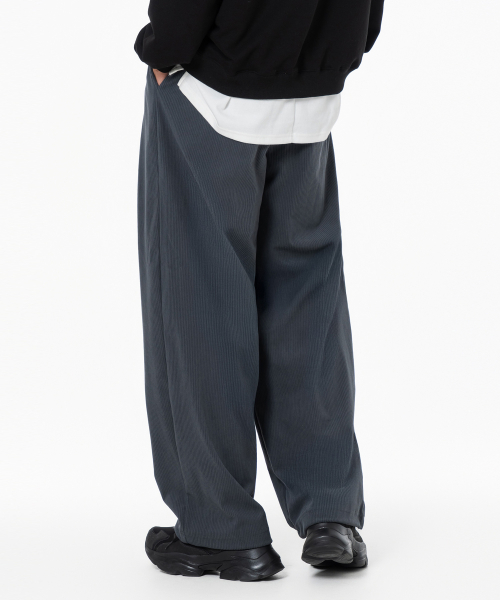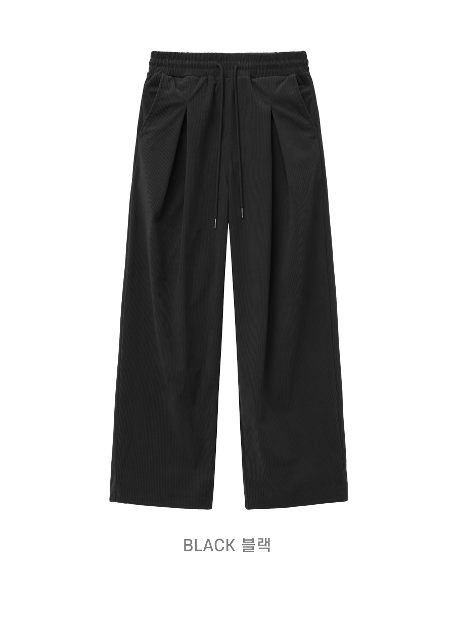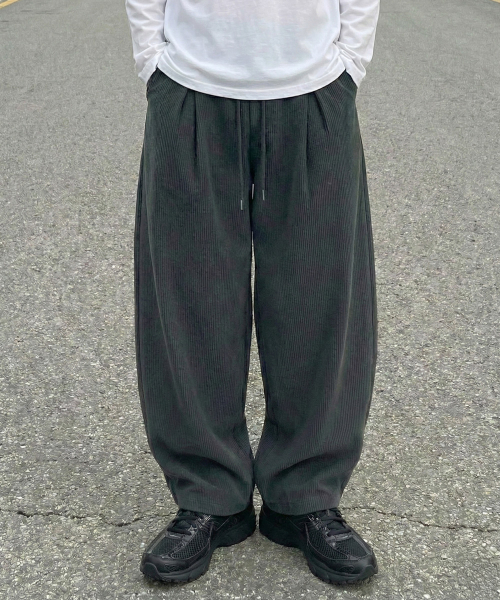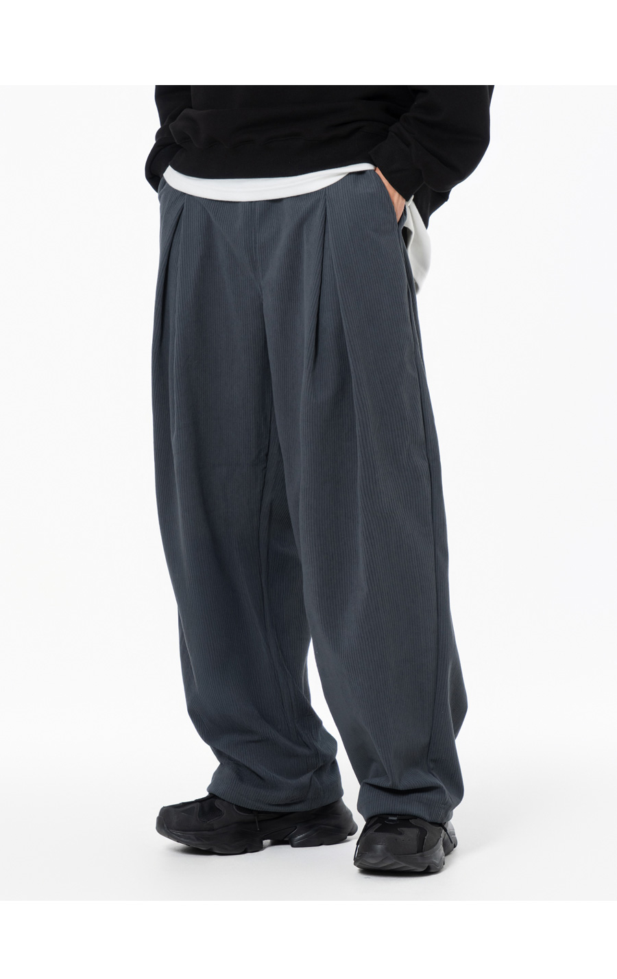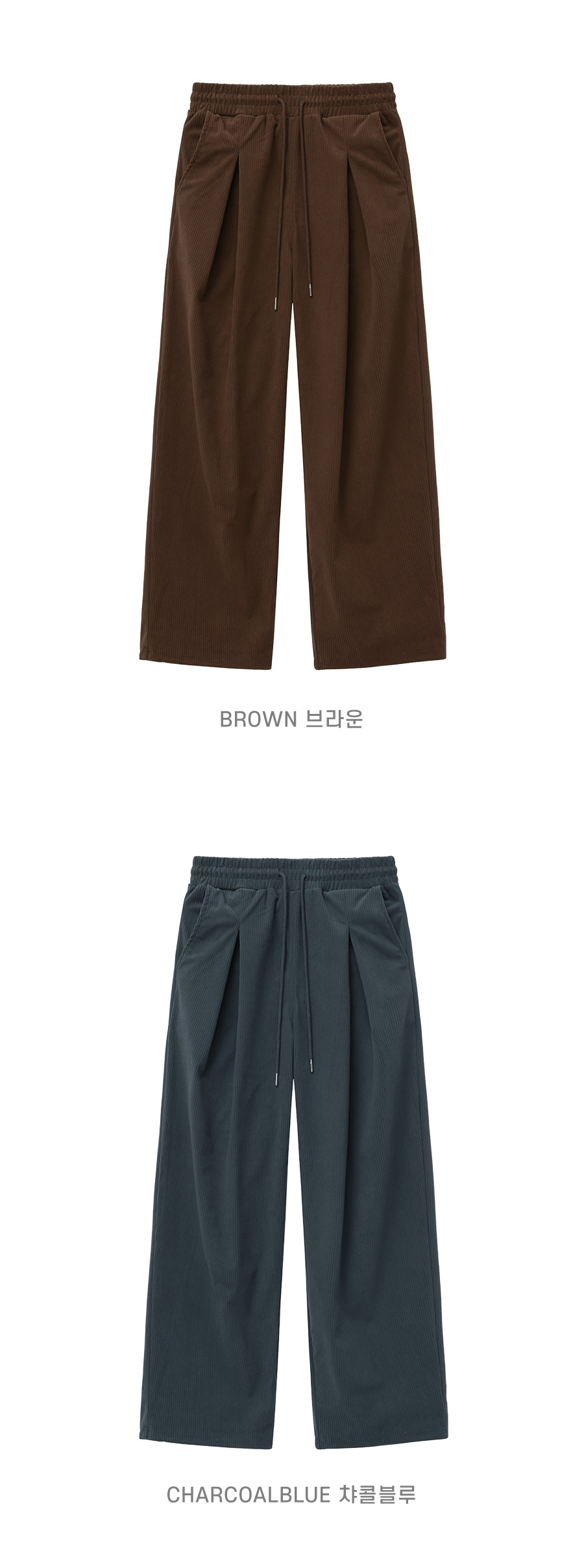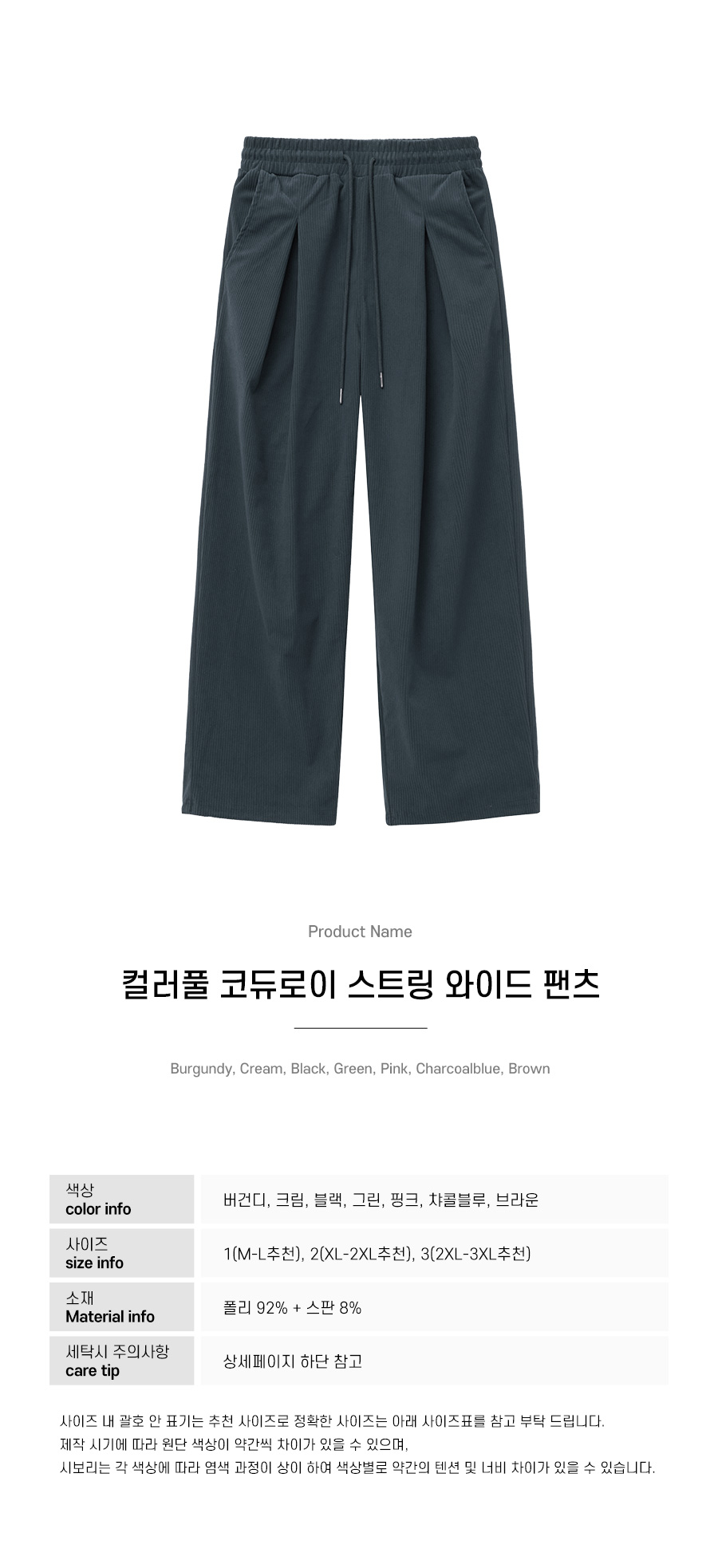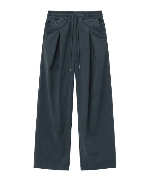컬러풀 코듀로이 스트링 와이드 팬츠 챠콜블루