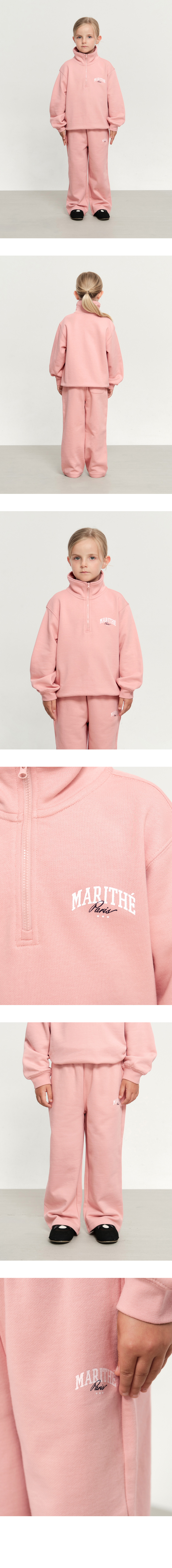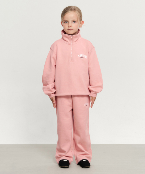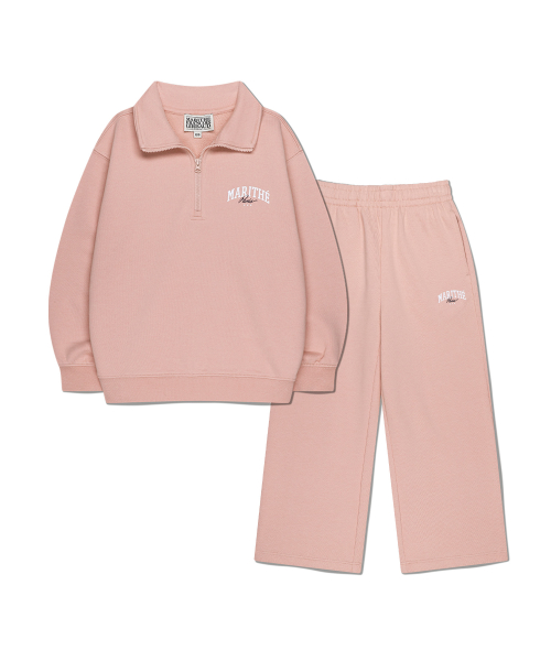 KIDS HALF ZIP-UP SWEAT SET-UP light pink