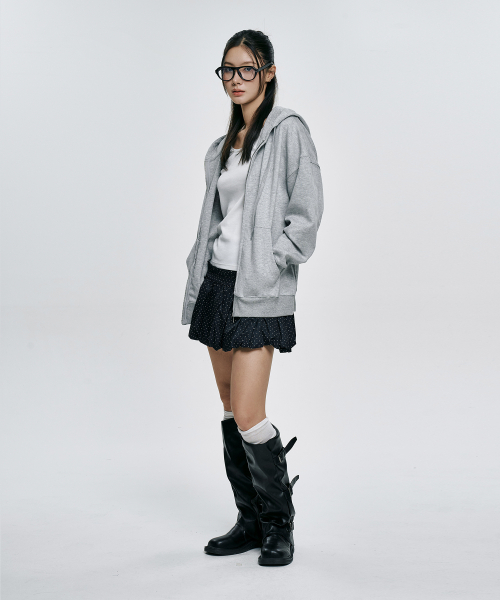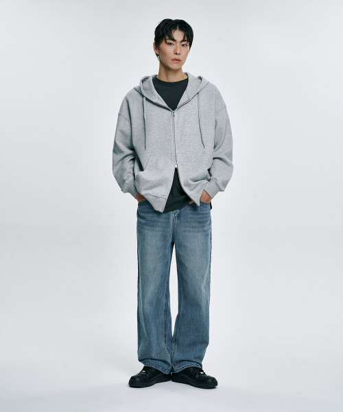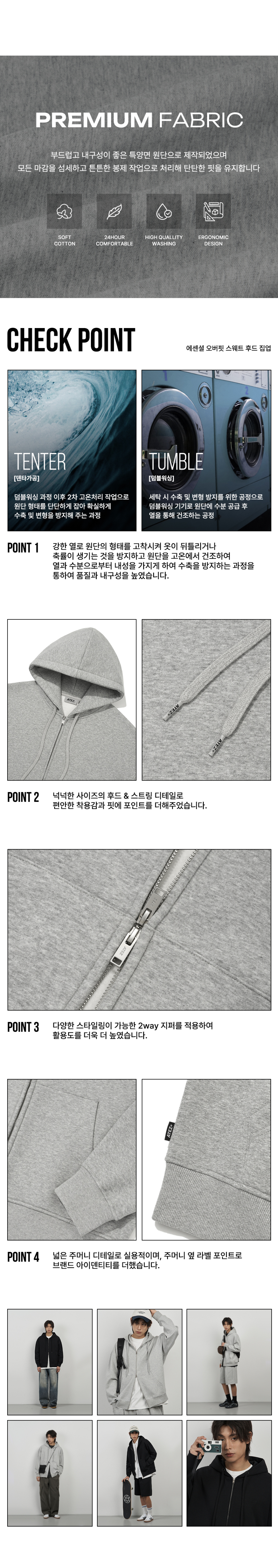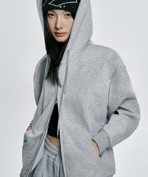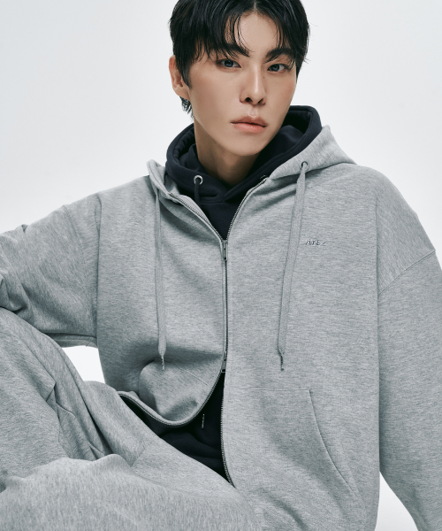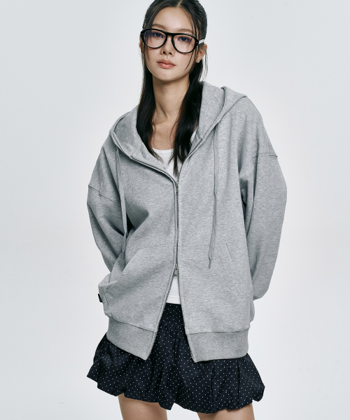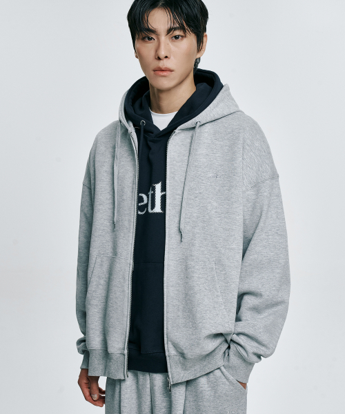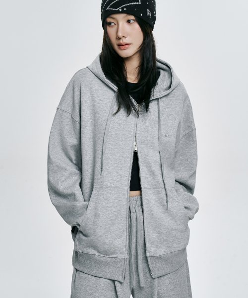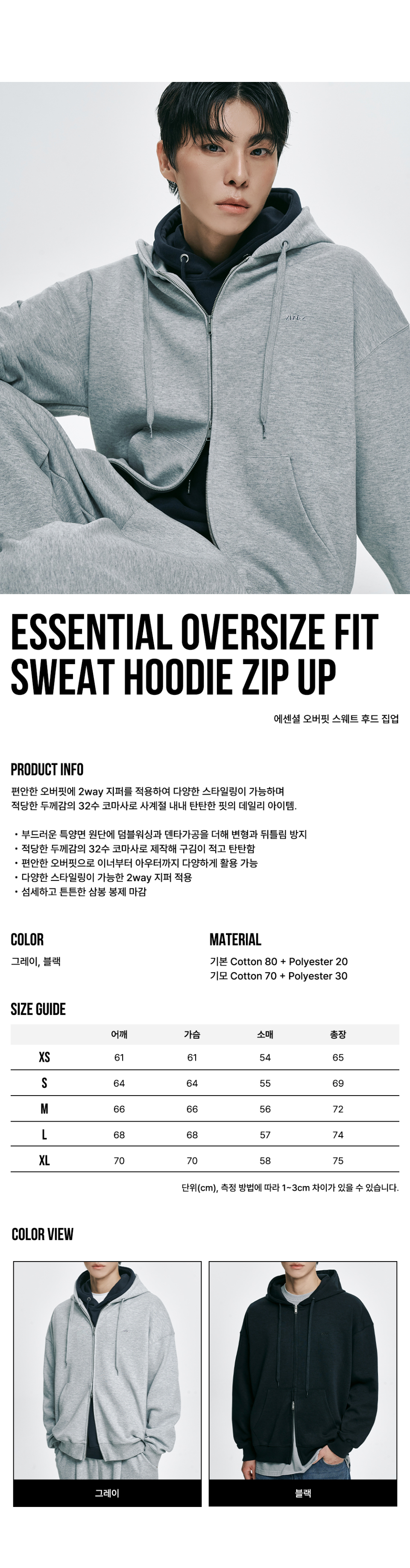 에센셜 오버핏 스웨트 후드 집업 [그레이]