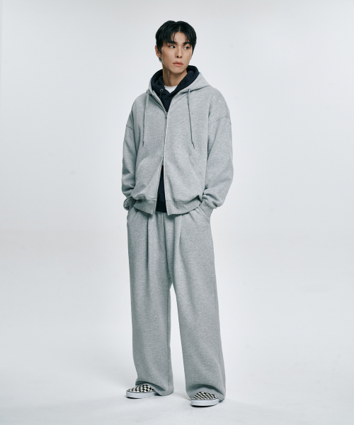 에센셜 원턱 와이드 스웨트 팬츠 [그레이]