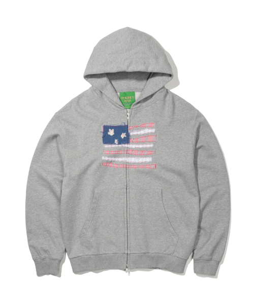 USA FLAG APPLIQUE ZIP HOODIE - GRAY