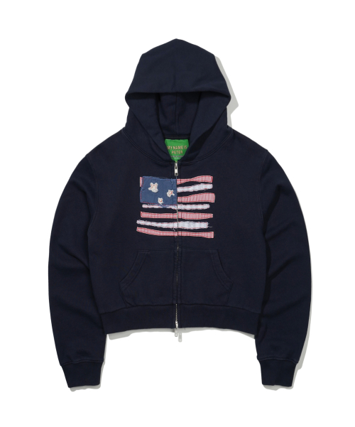 (W) USA FLAG APPLIQUE ZIP HOODIE - NAVY