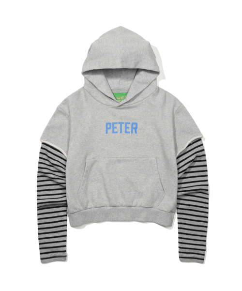 (W) PETER LAYERED STRIPE HOODIE - GRAY