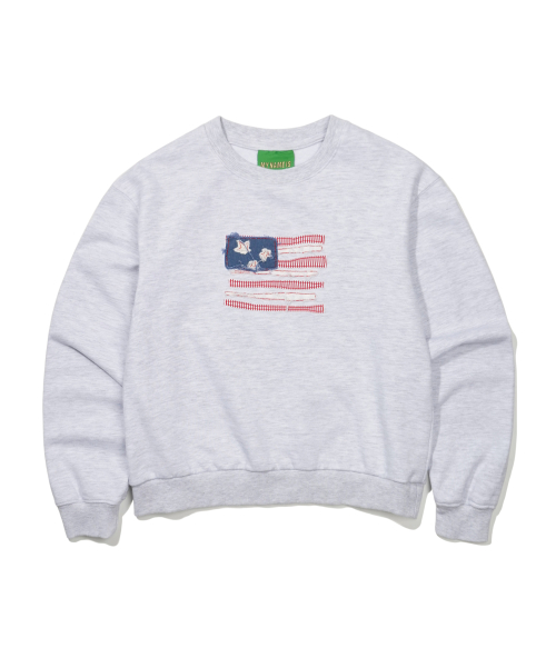 (W) USA FLAG APPLIQUE SWEATSHIRT - LIGHT GRAY